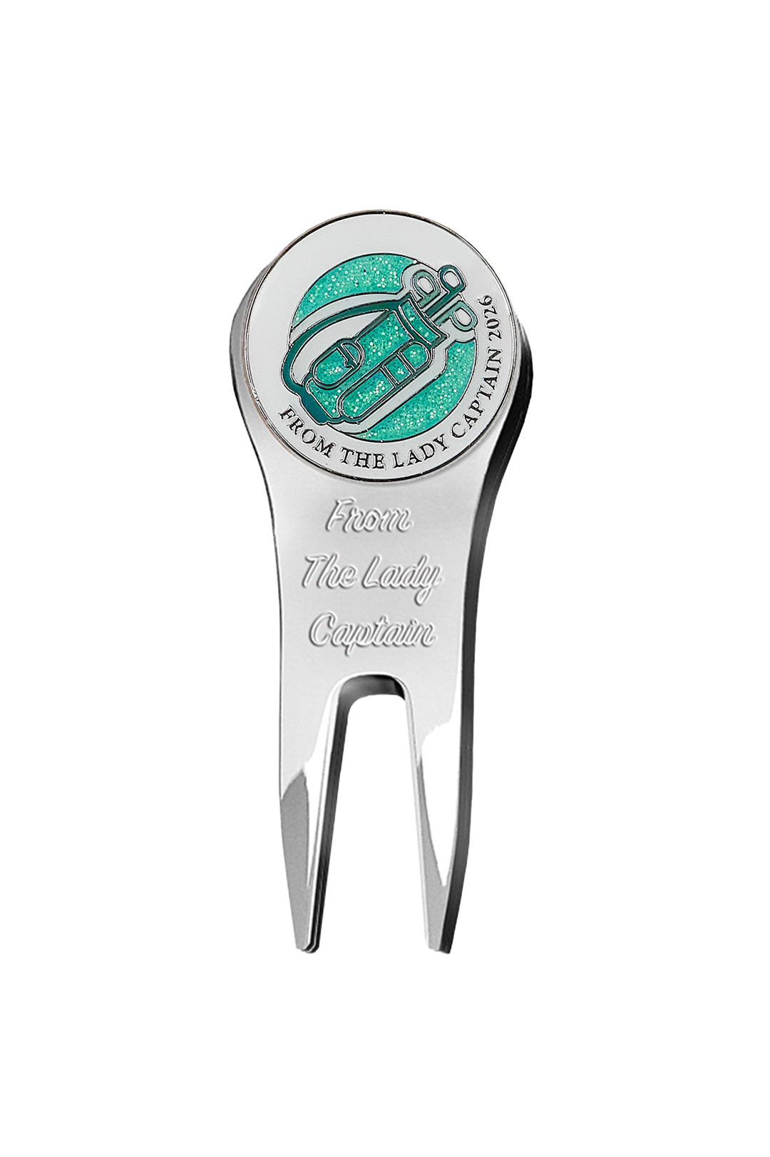 • Metal Golf Pitch Repairer: A sleek, durable tool designed for green-side etiquette, elegantly marked with: "From the Lady Captain."