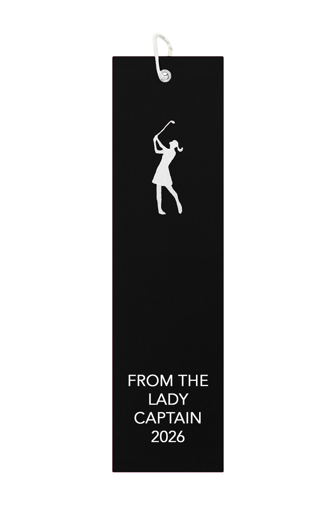 Our embroidered "From The Lady Captain 2026" tri-fold golf towels makes the perfect present or prize from Lady Captains.