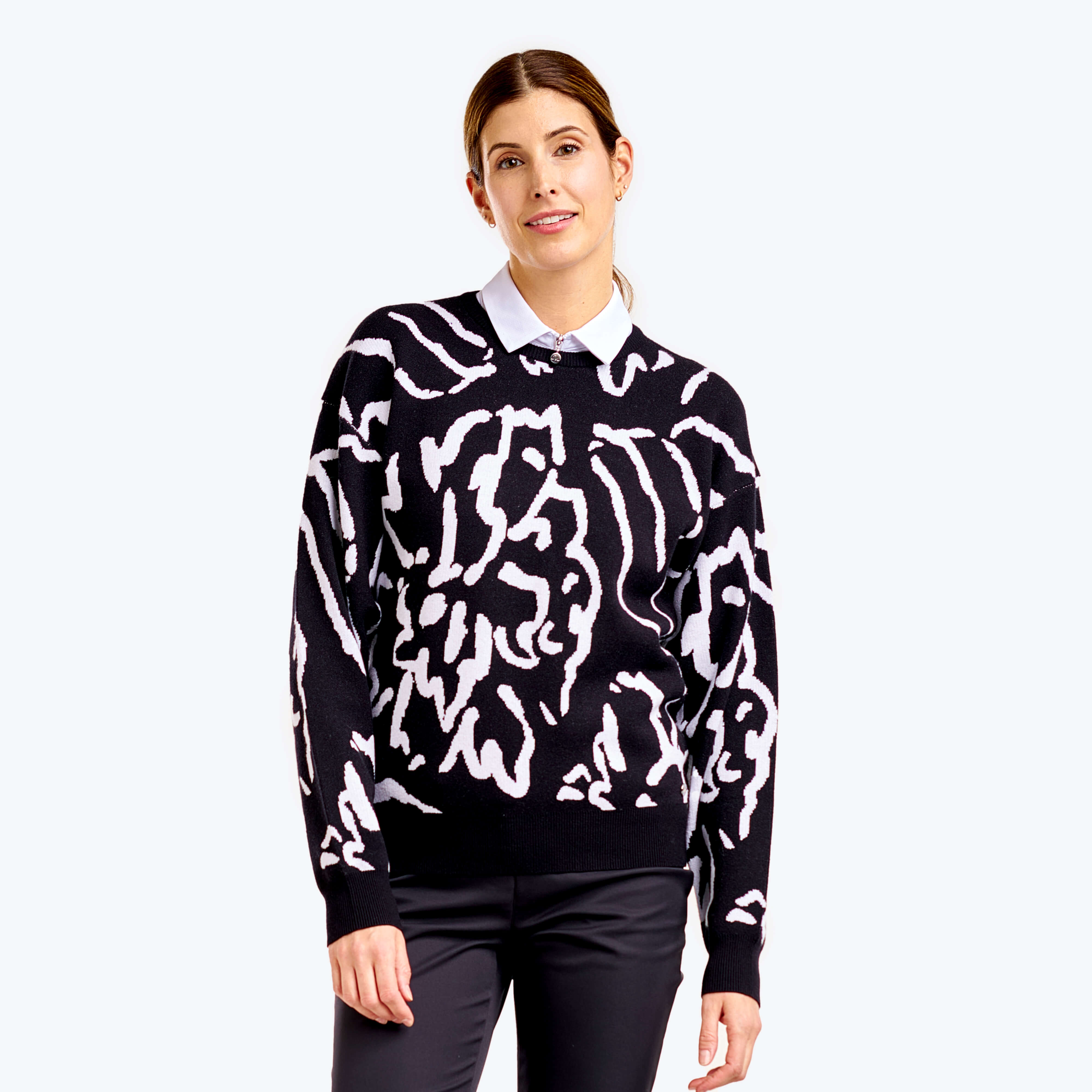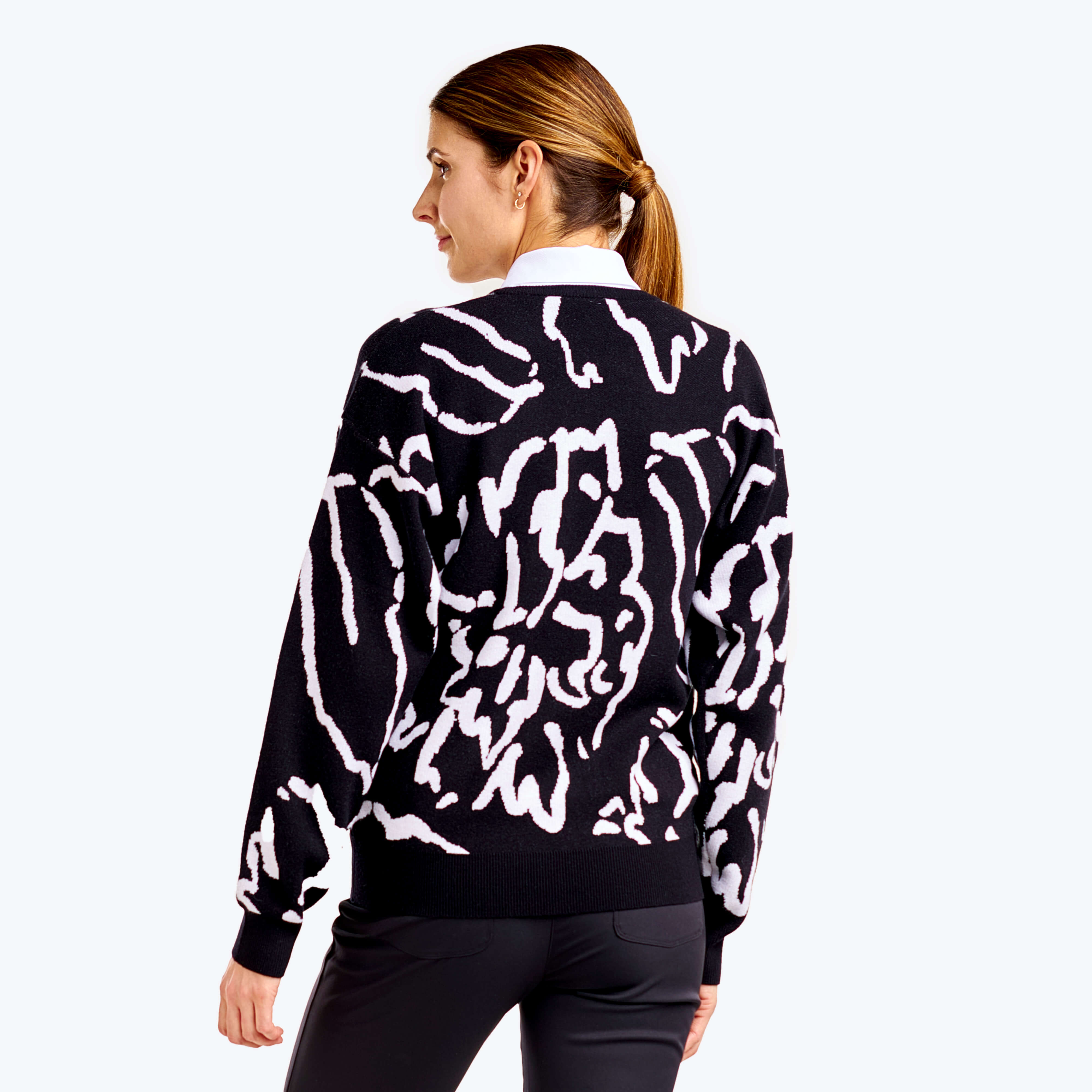 Discover the Dahlia sweater from NVO. This lightweight knit offers UPF 30 sun protection, four-way stretch, and quick-dry comfort—perfect for breezy days on or off the course. Soft, breathable, and effortlessly refined.