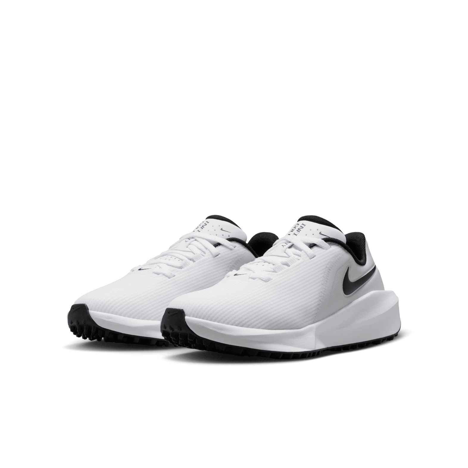 Inspired by the agility of a running shoe and designed to keep up with a high-energy game, the Nike Infinity G Jr. is the perfect choice for junior golfers - or even golfers with smaller feet. This comfortable, water-repellent option is built to be laced up for any round of the year, providing the stability and protection needed to develop a confident swing.