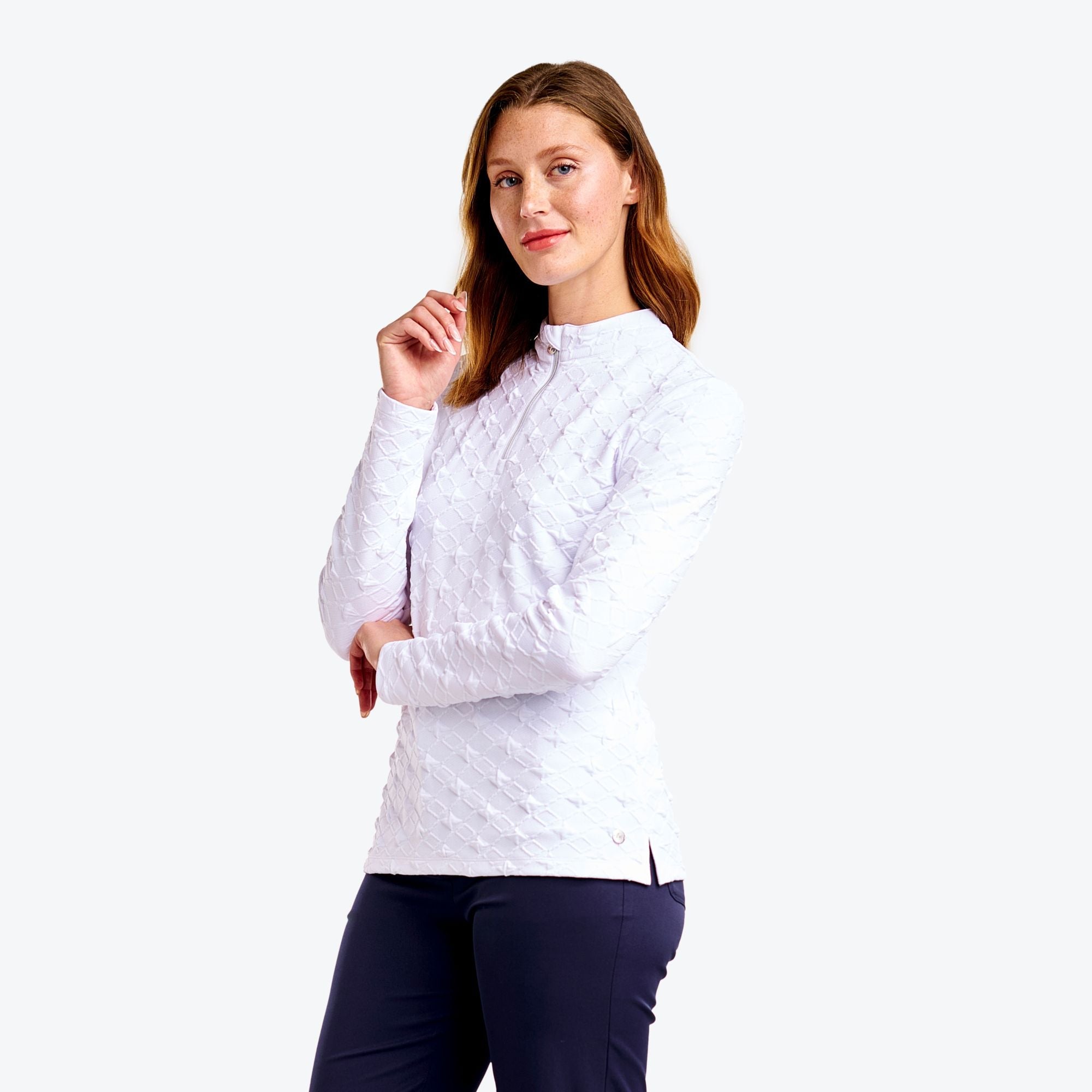 This long sleeve ladies golf top combines style and performance for your golf rounds. Made with 3D knit, it offers a semi-fitted cut and great freedom of movement.