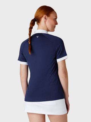 Short Sleeve V-Placket Colourblock Golf Polo - Peacoat