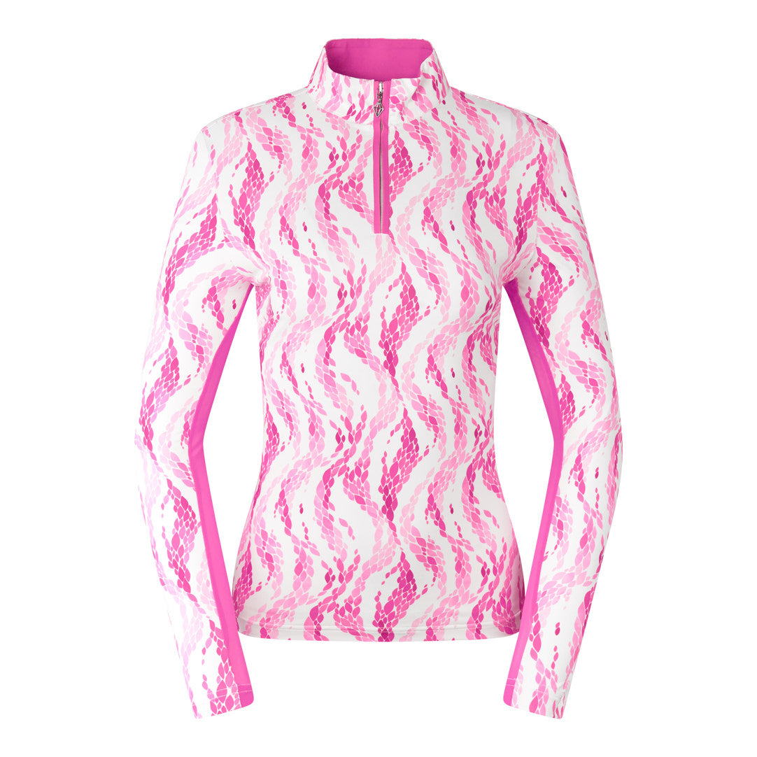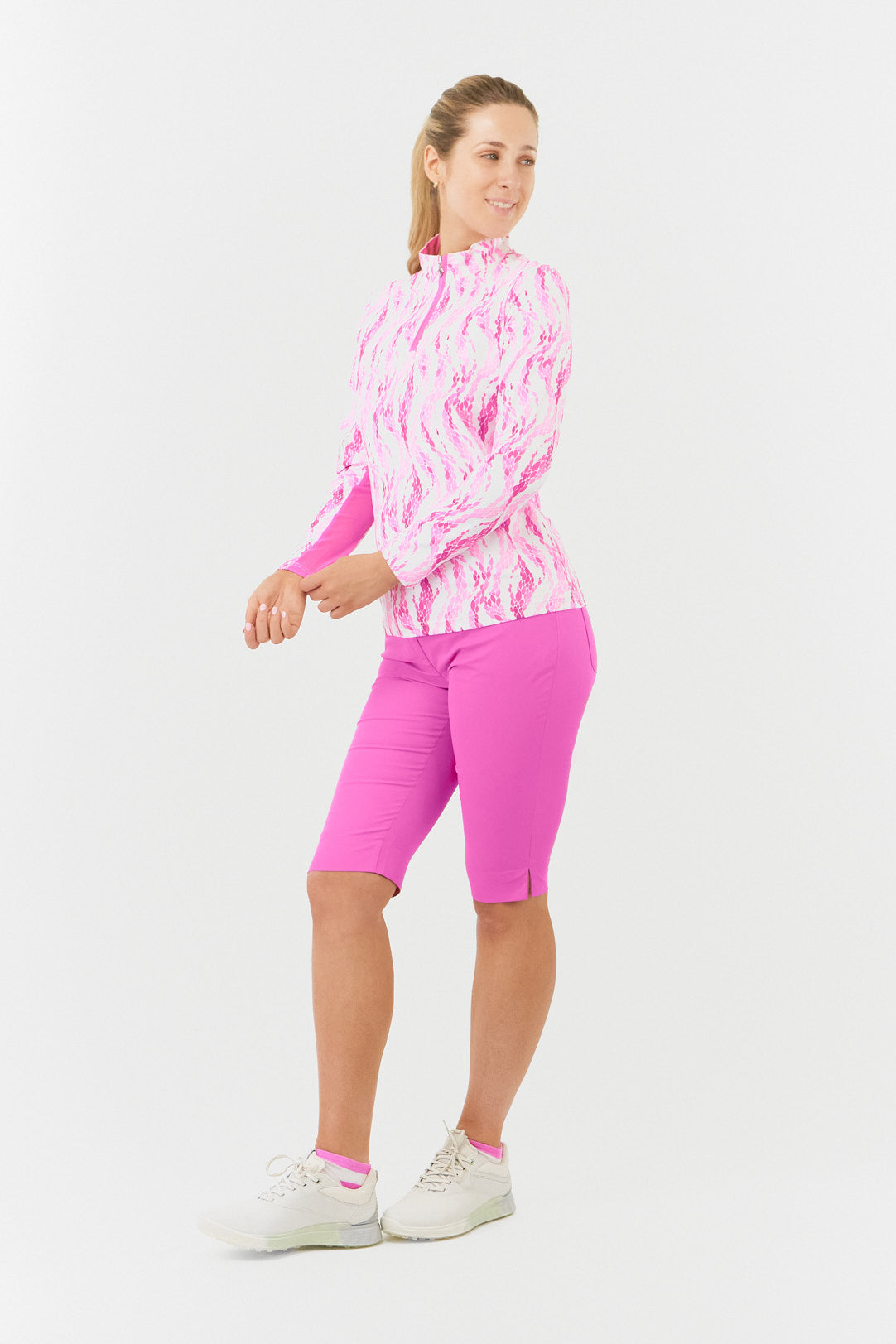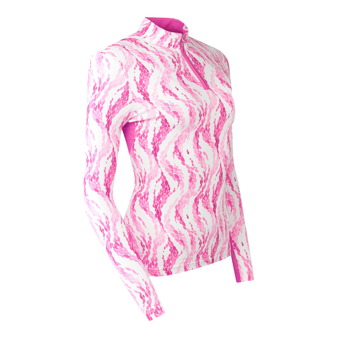 Elevate your golf game with the Rose Water Pure Golf Balance Long Sleeve Zip Top. Designed to blend style and function, this top features a striking print showcasing layers of gentle petals in three shades of pink. Discover the core elements below and see why the must-have Balance top is a game-changing addition to your golf attire.