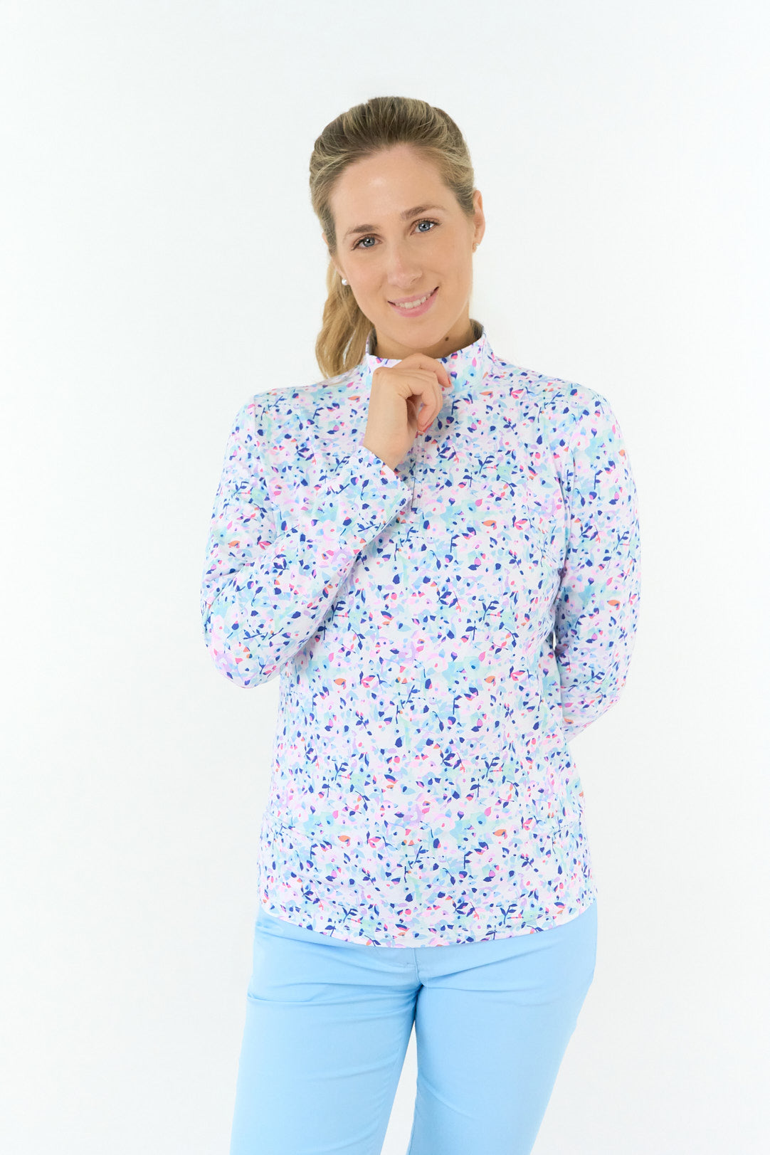 The Balance Long Sleeve Zip Top is a ladies golf top designed to blend style, function and comfort, with under-arm mesh sleeve panels which enhances breathability for extended wear.