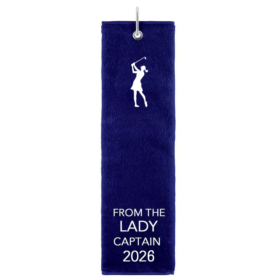 Our embroidered "From The Lady Captain 2026" tri-fold golf towels makes the perfect present or prize from Lady Captains.