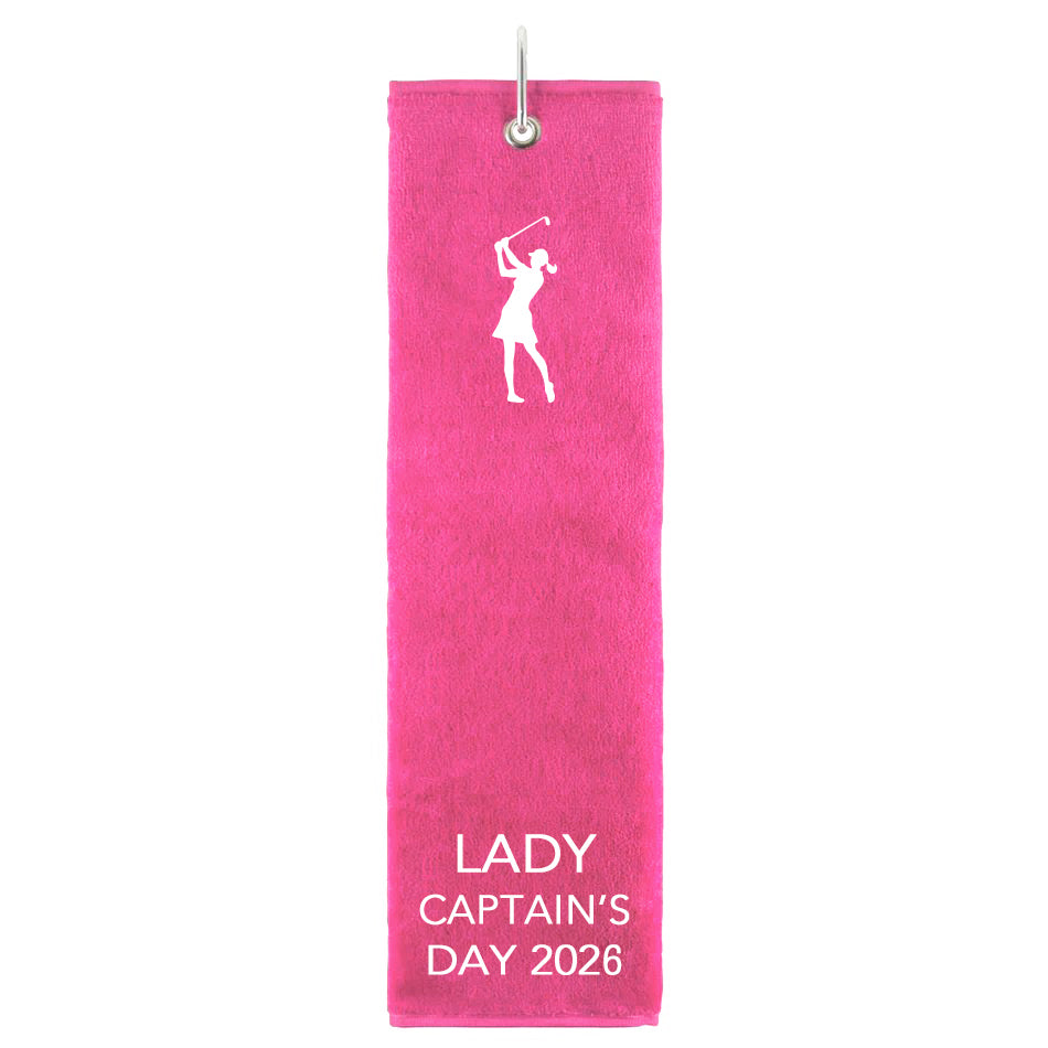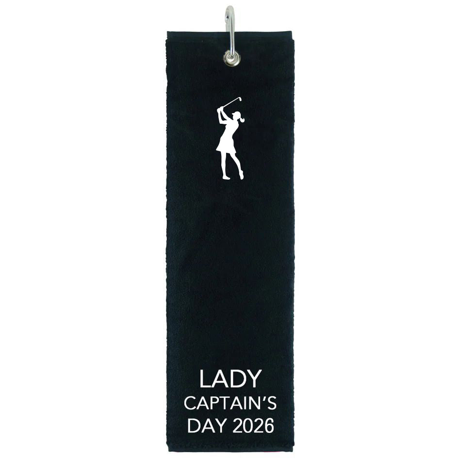 Our embroidered "Lady Captain's Day 2026" tri-fold golf towels make the perfect present or prize for Lady Captains, or from Lady Captains.