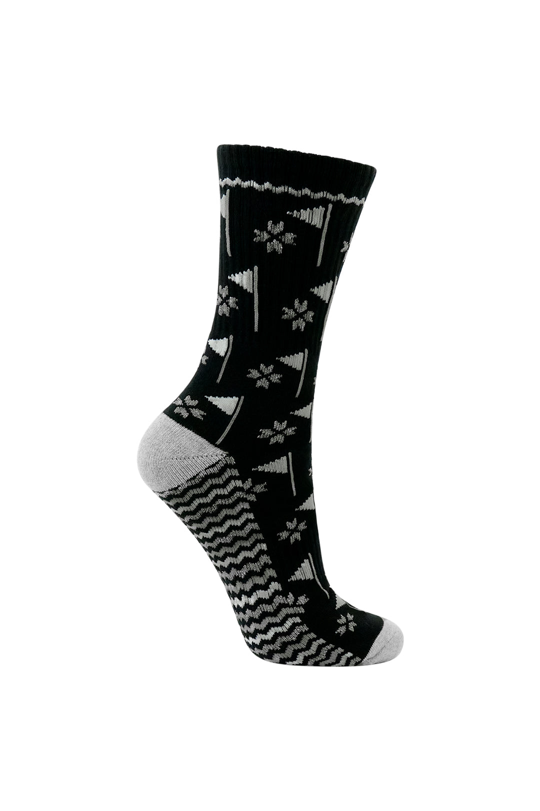 Our Black Ladies Golf Crew Sock has a trendy golf flag design with lurex detailing on the sole. These ladies long golf socks provide comfort and support as you perform on the golf course or when you are out & about on a cold winters day. Designed with a warm but soft fabric to prevent any unwanted distractions as you focus on your round. The socks provide cushioning in key areas for better flexibility for longer-lasting performance.