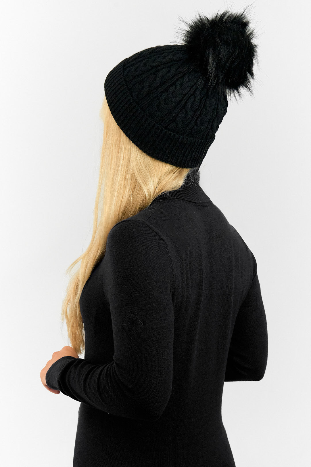 This waterproof bobble ladies golf hat from Surprizeshop is perfect for staying dry this Autumn/Winter. This versatile black colour makes the perfect addition and whether you're out on the course or on a winter walk you'll stay stylishly dry.  This hat has three layers - an inner waterproof layer plus a soft fleece lining which makes it warm and comfortable to wear and the knit as the outer layer. Detachable faux fur bobble.