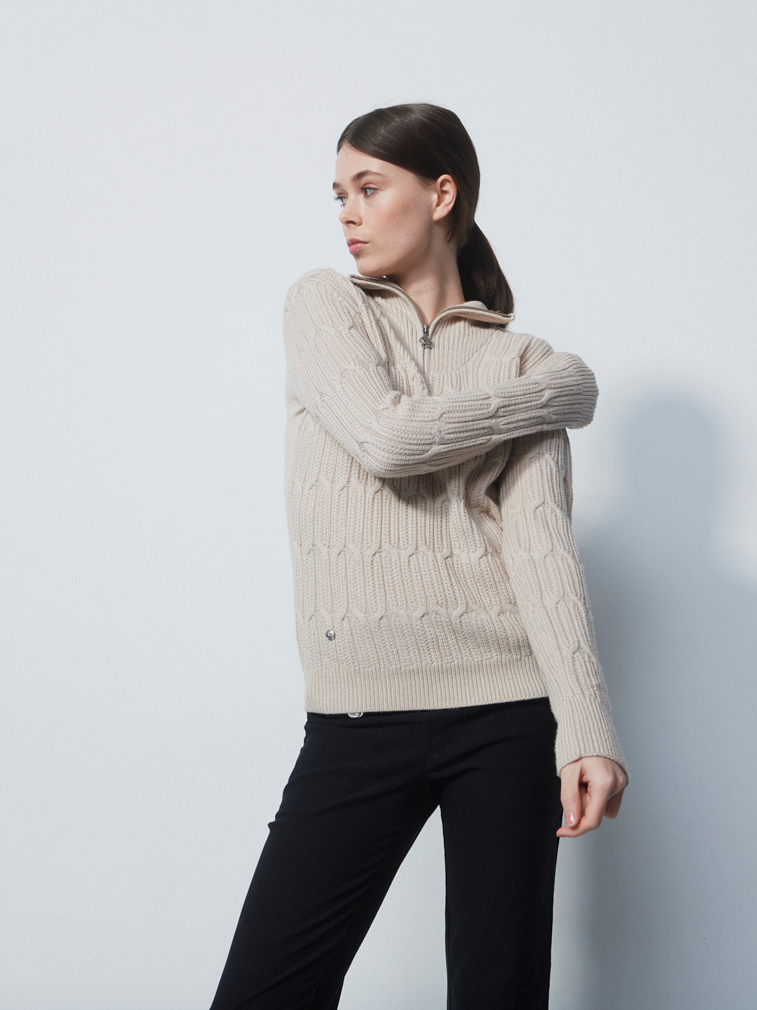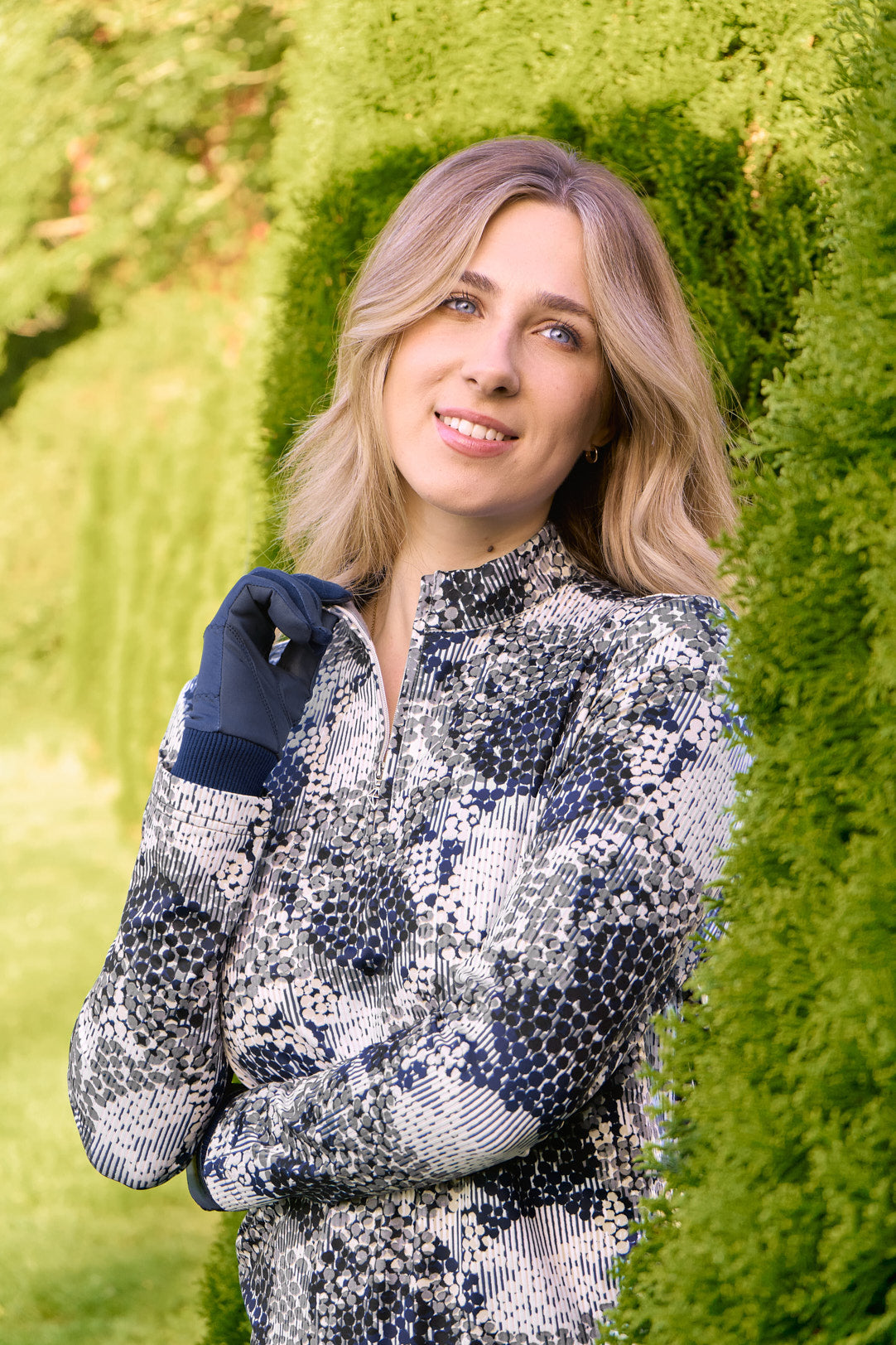 Fashionable textured golf attire which pairs well with plain or print outfits.