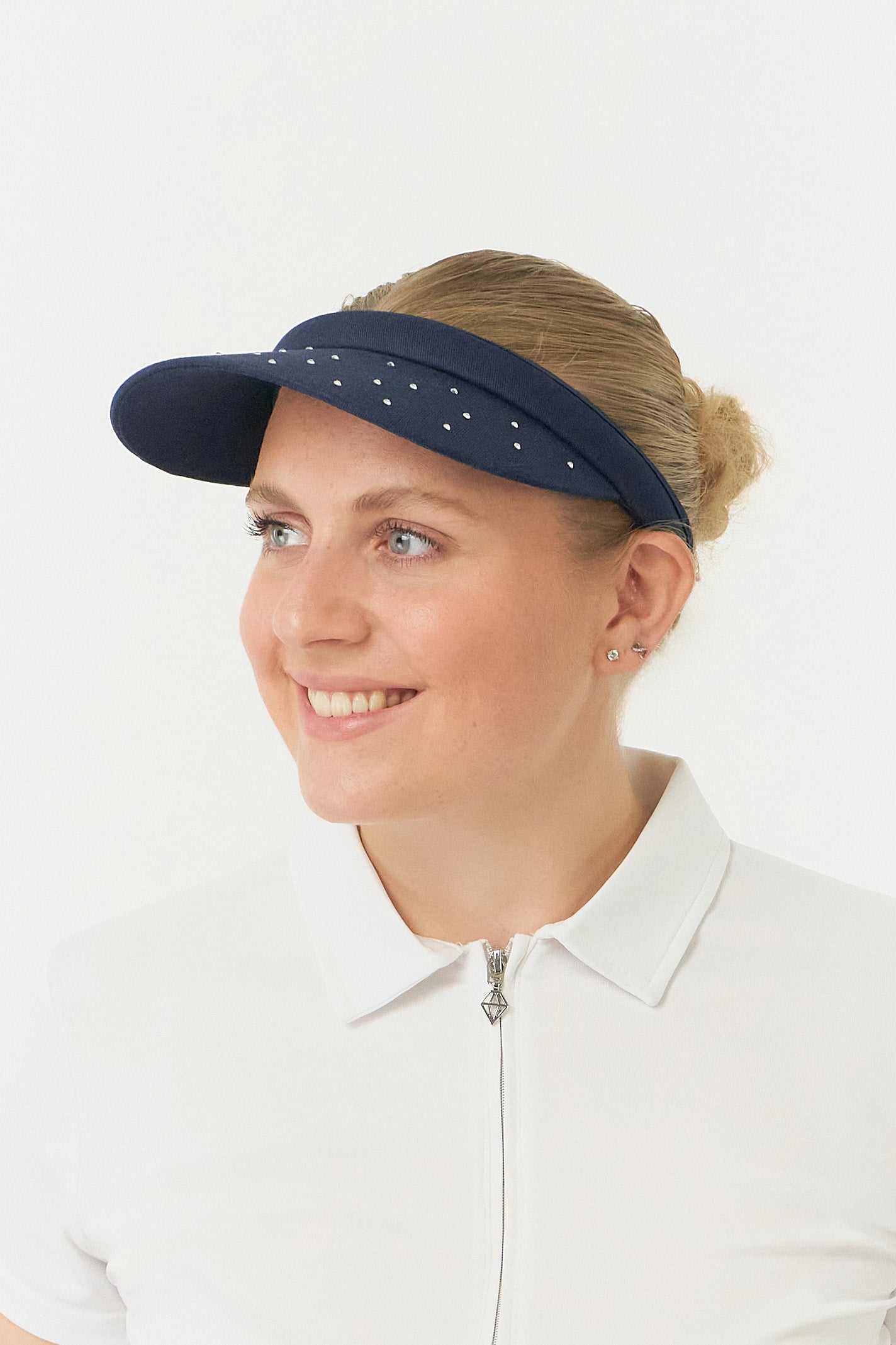 Protect your eyes from the sun & hair off of your face, with this Ladies' golf visor. Constructed with quick-drying fabrics and stylish design to protect you on & off the golf course. This golf visor comes in a one-size-fits-all design which clips around your head to hold it securely in place, making it a lovely golf gift! it also features a concealed magnet & comes with hand enameled unique golf ball marker! The Headband features a soft-lined absorbent towel.