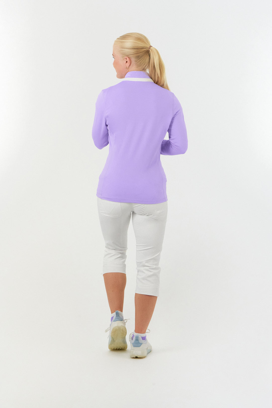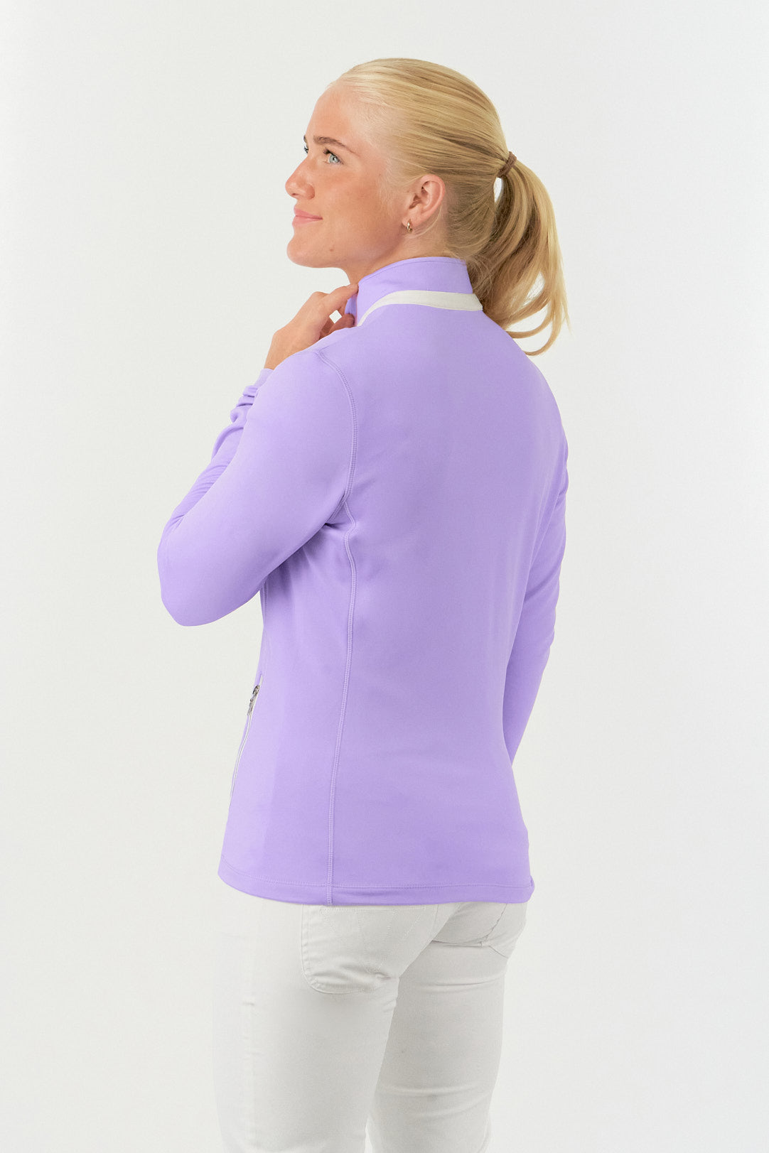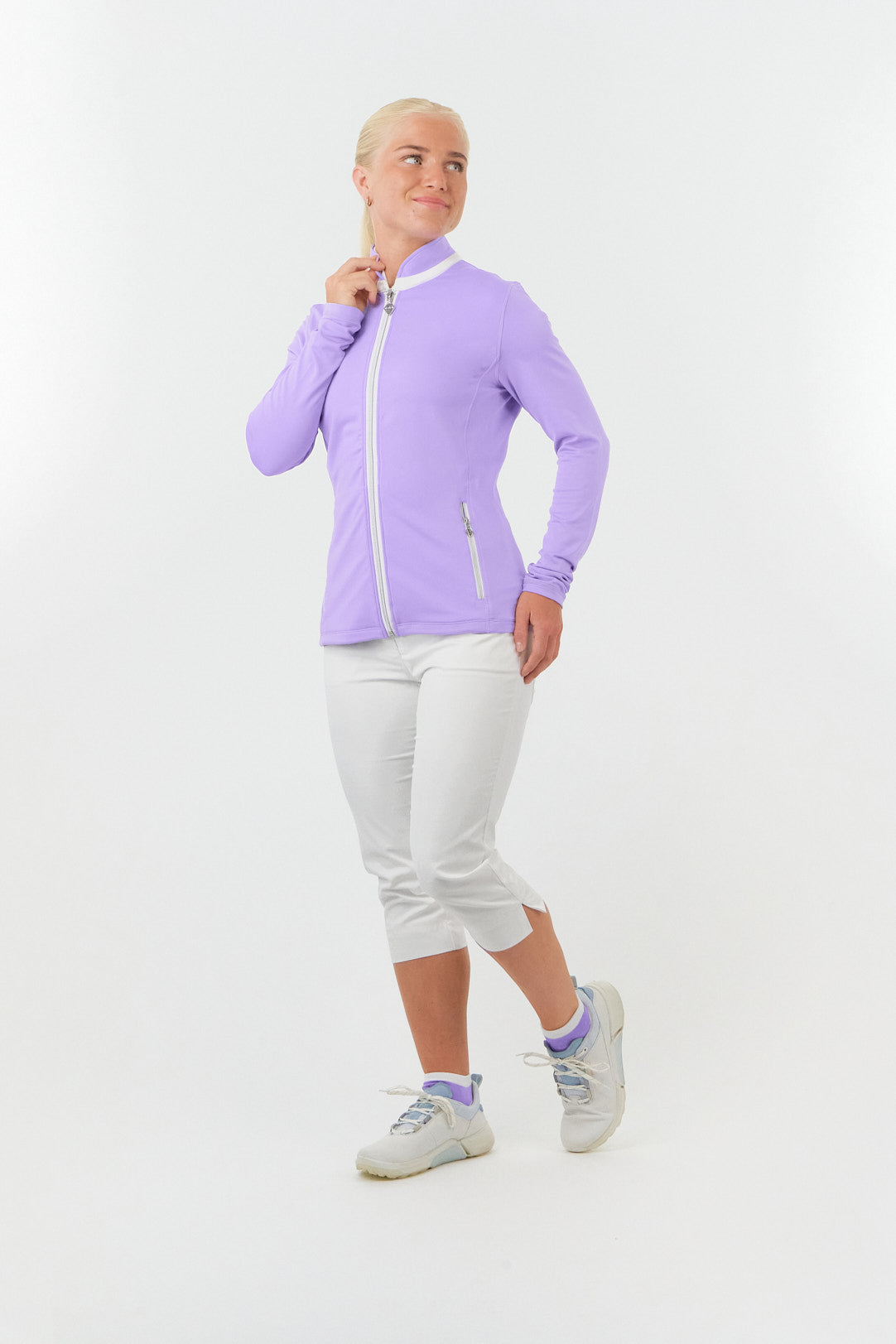 Elevate your golf wardrobe with the addition of this mid-layer jacket. Crafted with a soft and lightweight fabric, it won't crease and can be conveniently stored in your golf bag. The lilac color adds style to any look, and can be personalized with embroidery upon request. Versatile for any sport or casual wear.