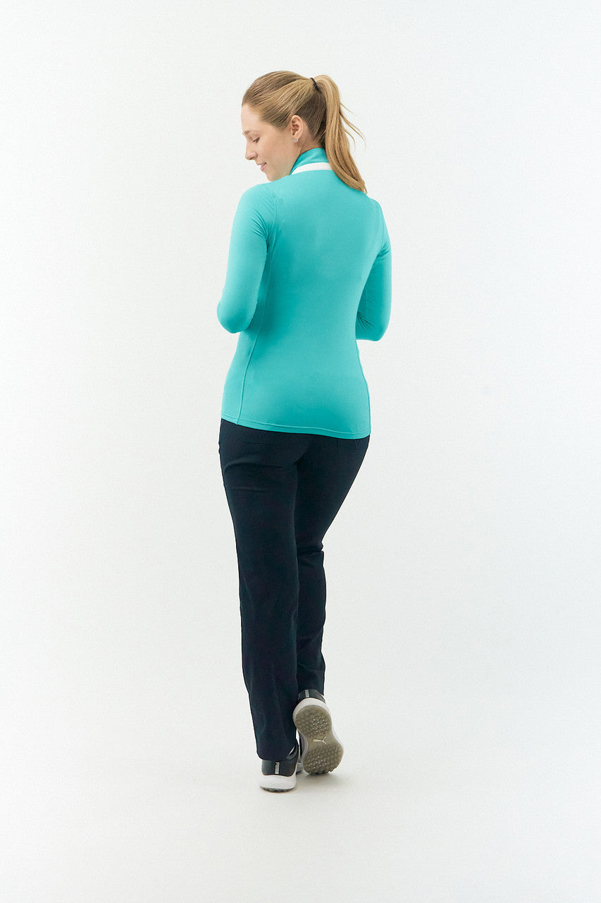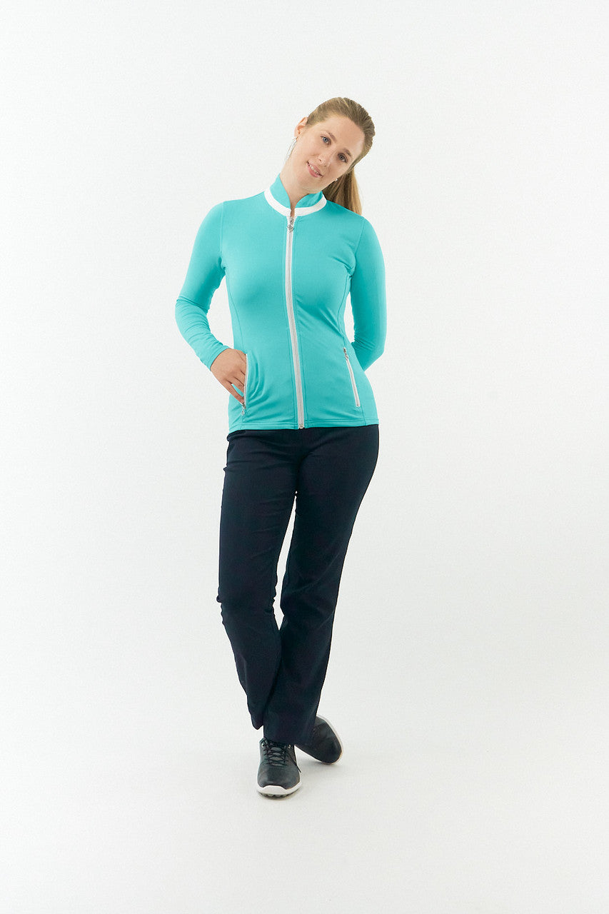The Ocean Blue Pure Golf Ladies Mist Full Zip Mid Layer has received the esteemed Editors Choice for 2024 from Golf Monthly. Discover why this jacket makes the perfect choice by clicking here. This versatile mid-layer is ultra-soft, lightweight, and wrinkle-resistant, allowing for convenient storage in your golf bag.