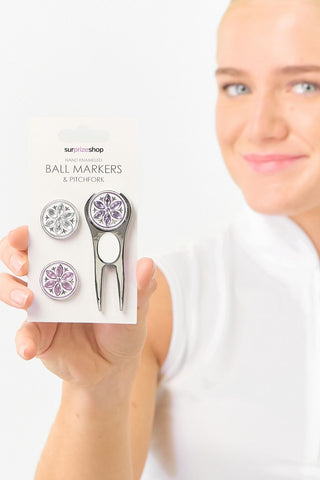Surprizeshop Crystal Flower Golf Ball Markers and Pitchfork Pack