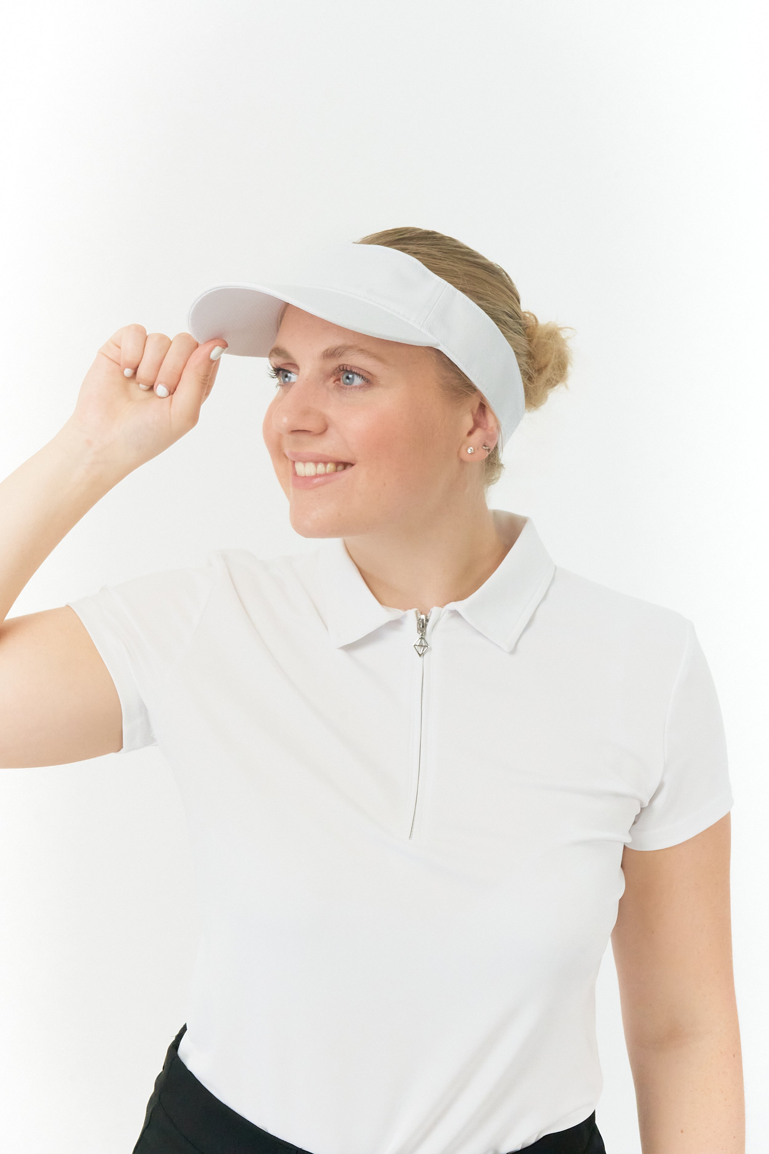 Available in a range of classic colours including White, Navy, and Black, this visor adds a touch of elegance to your golfing attire. Whether you're teeing off under the sun or seeking shade during a friendly round, this visor offers unparalleled comfort and style.