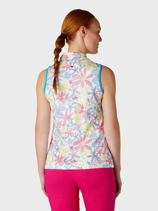 Callaway Golf Ladies Sleeveless Golf Polo Shirt - Chevron Floral Print