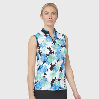 Callaway Golf Ladies Printed Floral Zip Sleeveless Polo - Caviar