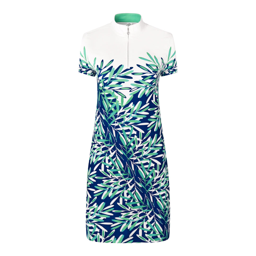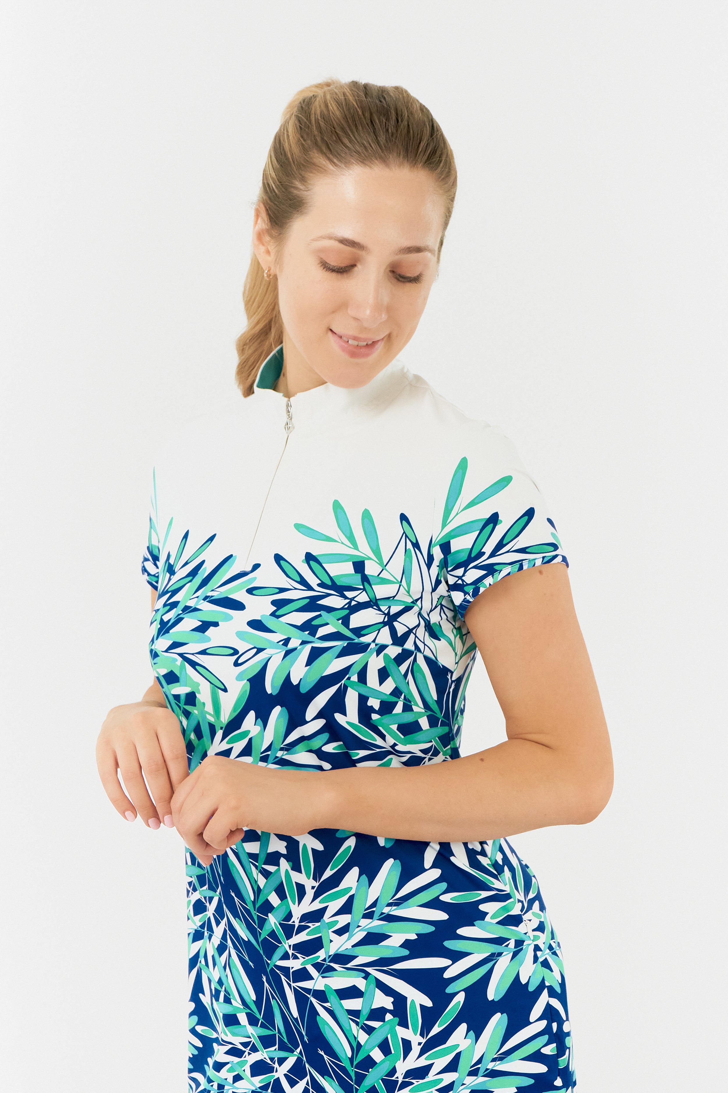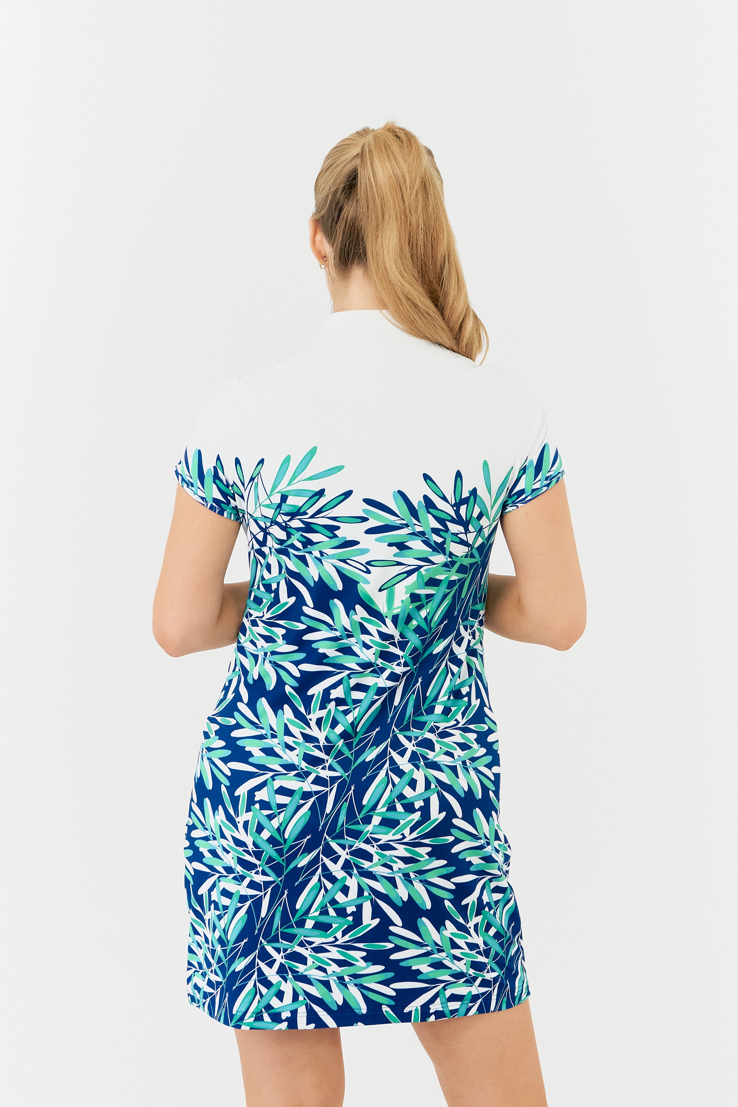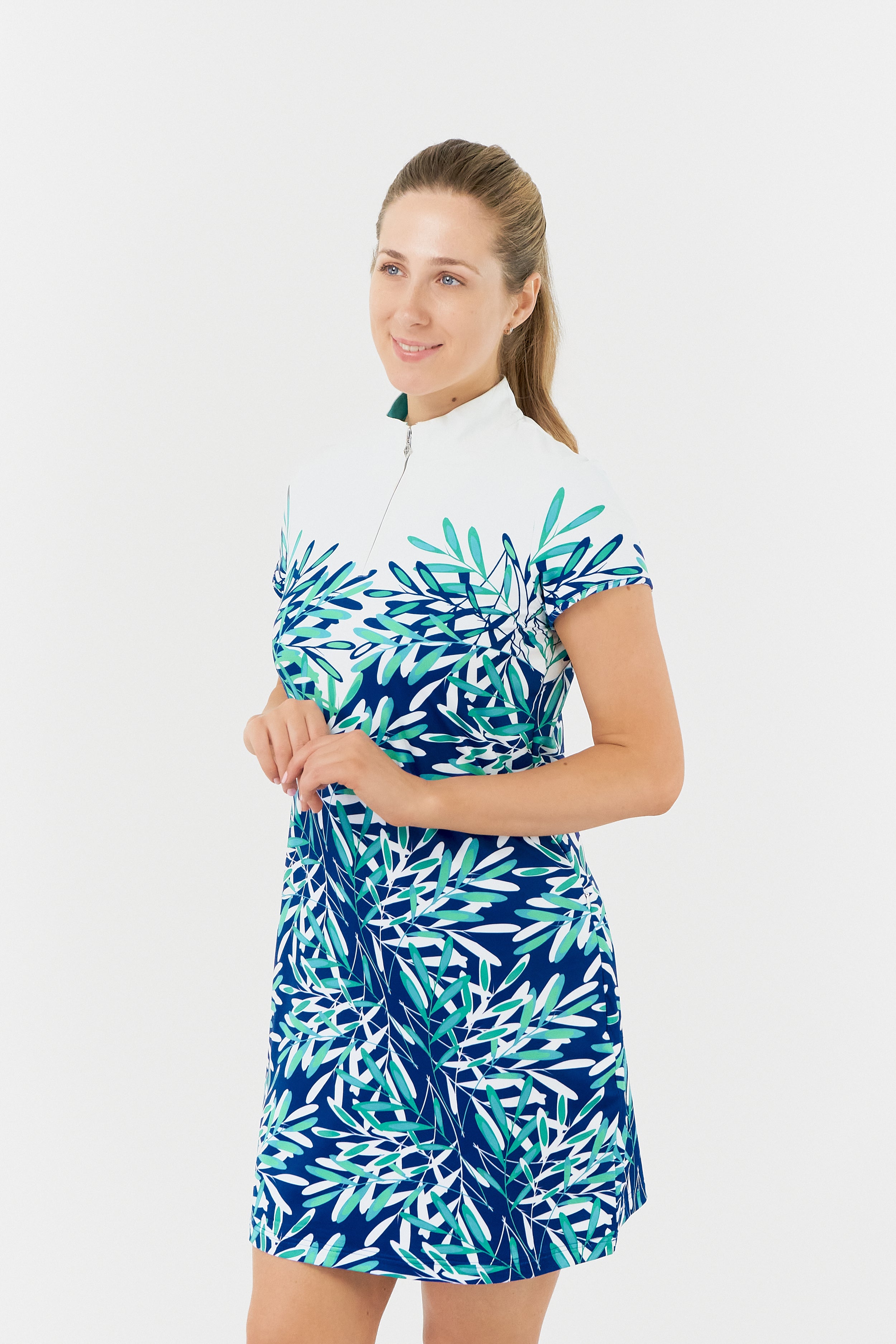 Embrace Pure Golf's Carly Cap Sleeve Ladies Golf Dress in Floating Palms, the ultimate elegant and unique piece for your golf wardrobe. This remarkable dress showcases a stunning pattern and a variety of enhancing features, guaranteeing you stand out in both style and play on the green. You won't want to miss out on this essential for any fashionable golfer.