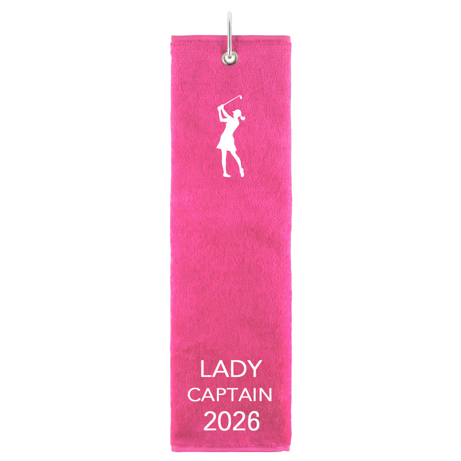 Our embroidered "Lady Captain 2026" tri-fold golf towels make the perfect present or prize for Lady Captains.