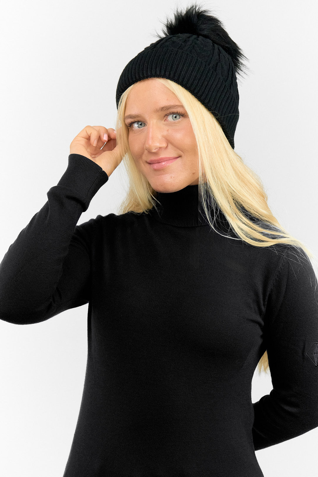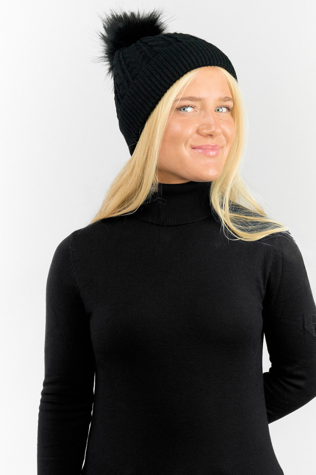 This waterproof bobble ladies golf hat from Surprizeshop is perfect for staying dry this Autumn/Winter. This versatile black colour makes the perfect addition and whether you're out on the course or on a winter walk you'll stay stylishly dry. This hat has three layers - an inner waterproof layer plus a soft fleece lining which makes it warm and comfortable to wear and the knit as the outer layer. Detachable faux fur bobble.