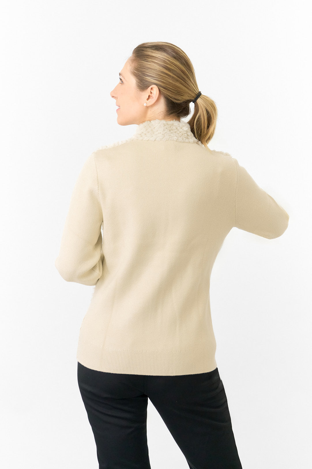Pure Golf Ladies Ellisa Faux Fur Front Full Zip Cardigan - Limestone