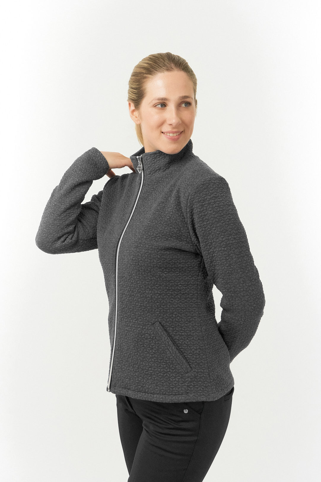 The Scarlett jacket from Pure Golf is a new addition for this season. It has a beautiful textured design and has a full zip. Generous pockets allow for convenient storage. The fabric allows full freedom of movement.