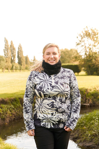 Soft Fleece Lined Women's Golf Snood with Embroidered Lady Golfer - Black