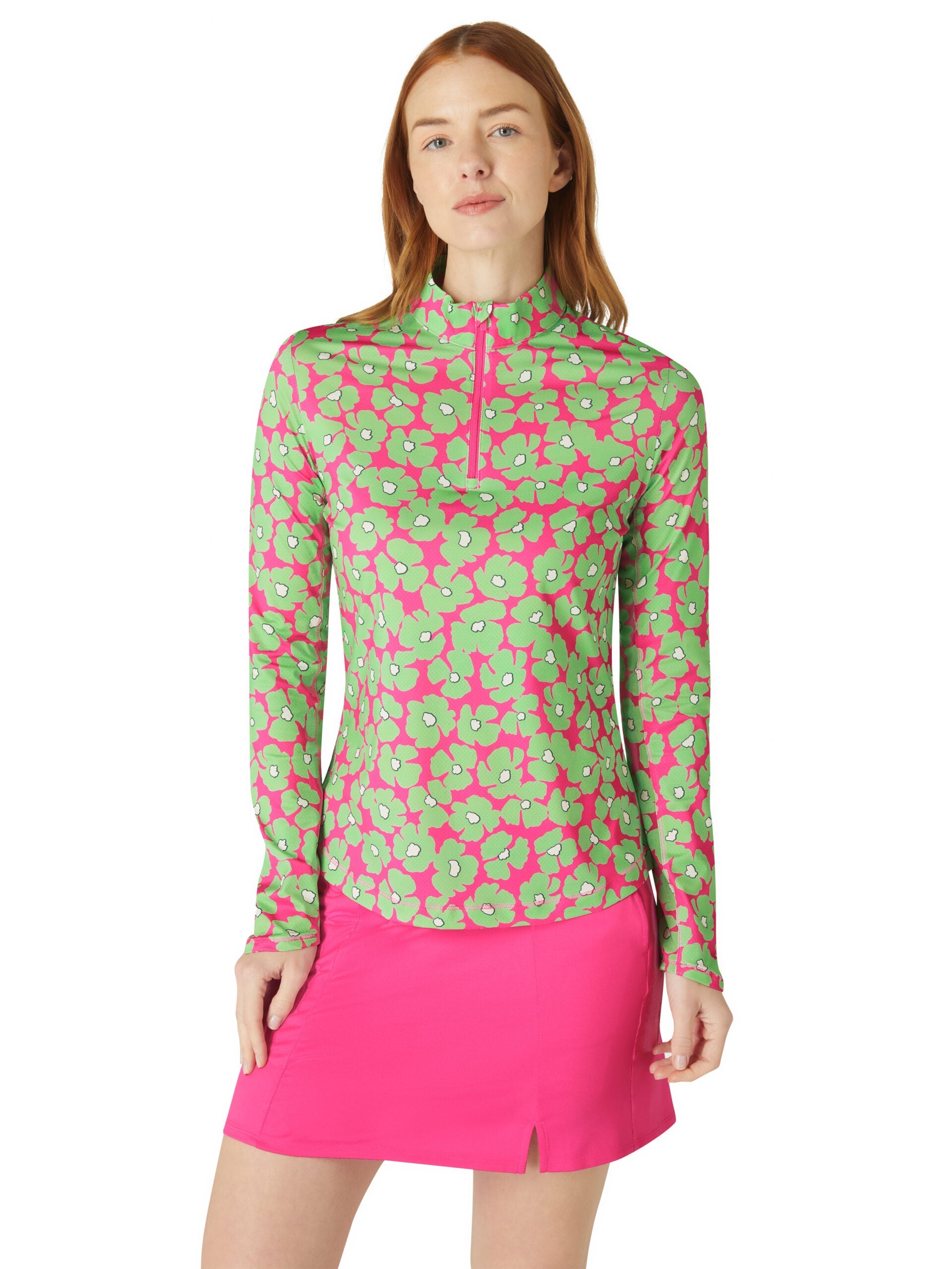 Engineered with SWING TECH™ stretch fabric, this top allows for unrestricted movement, ensuring smooth, powerful swings. The striking floral print adds a fashionable touch, making it a standout piece both on and off the course.