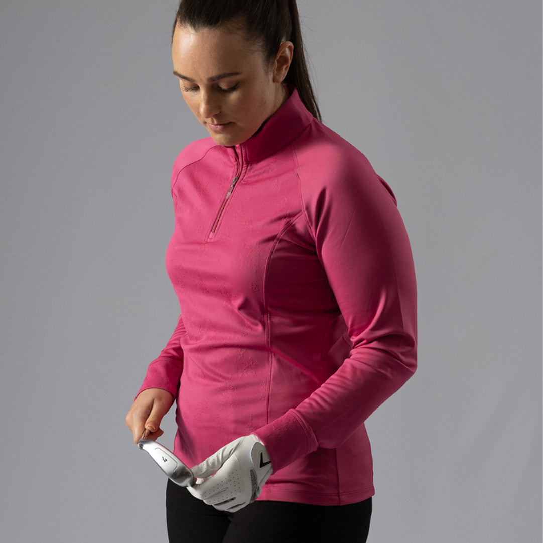 Callaway Golf Ladies Jacquard Floral 1/4 Zip Pullover -Cactus Flower