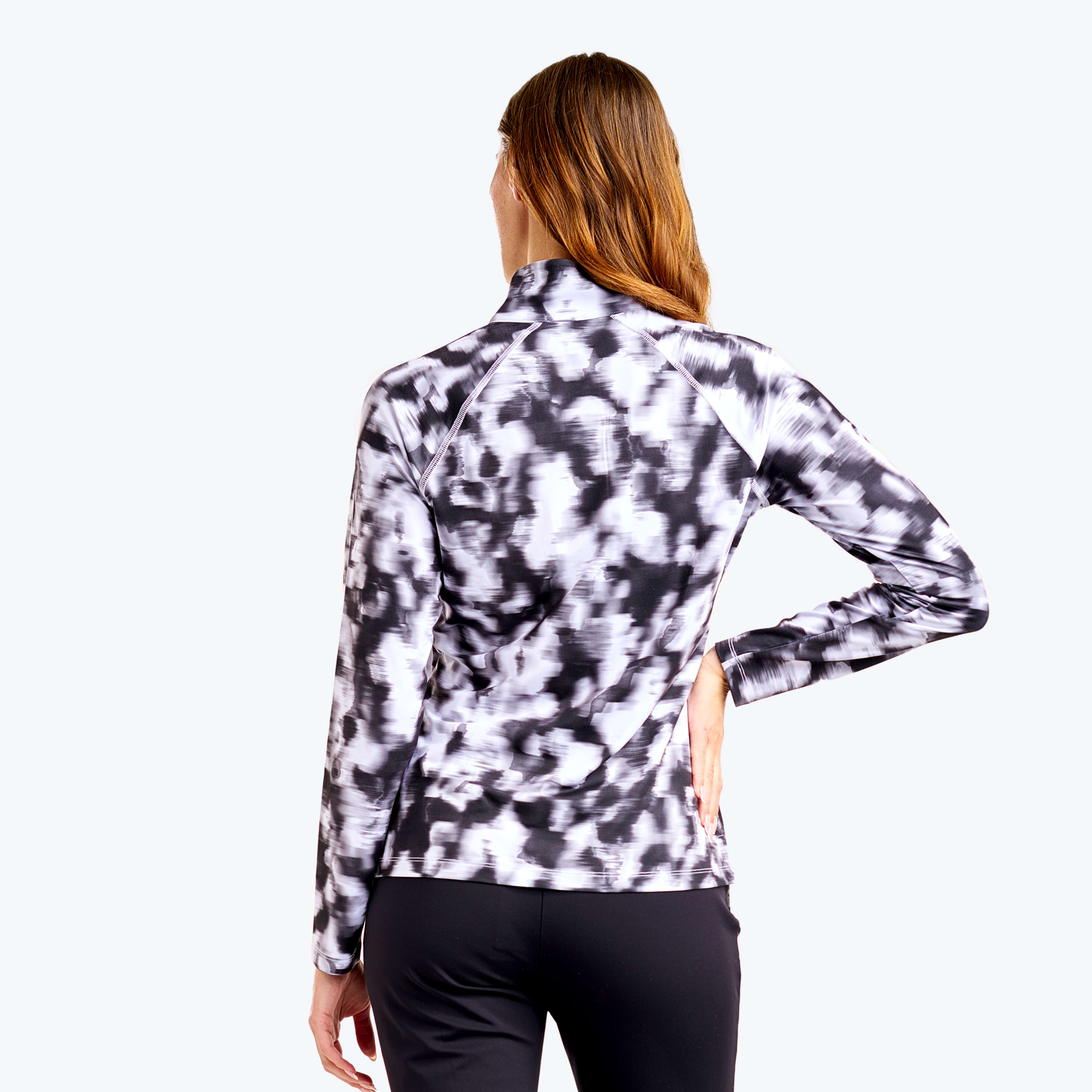 This long-sleeved top from NVO combines comfort and performance for your golf rounds. Made with sublimated peached knit, it offers a semi-fitted cut and great freedom of movement. The mock neck, raglan sleeves, and side slits add a modern touch, while its UV protection, quick-dry, and moisture-wicking properties ensure optimal comfort throughout your game.