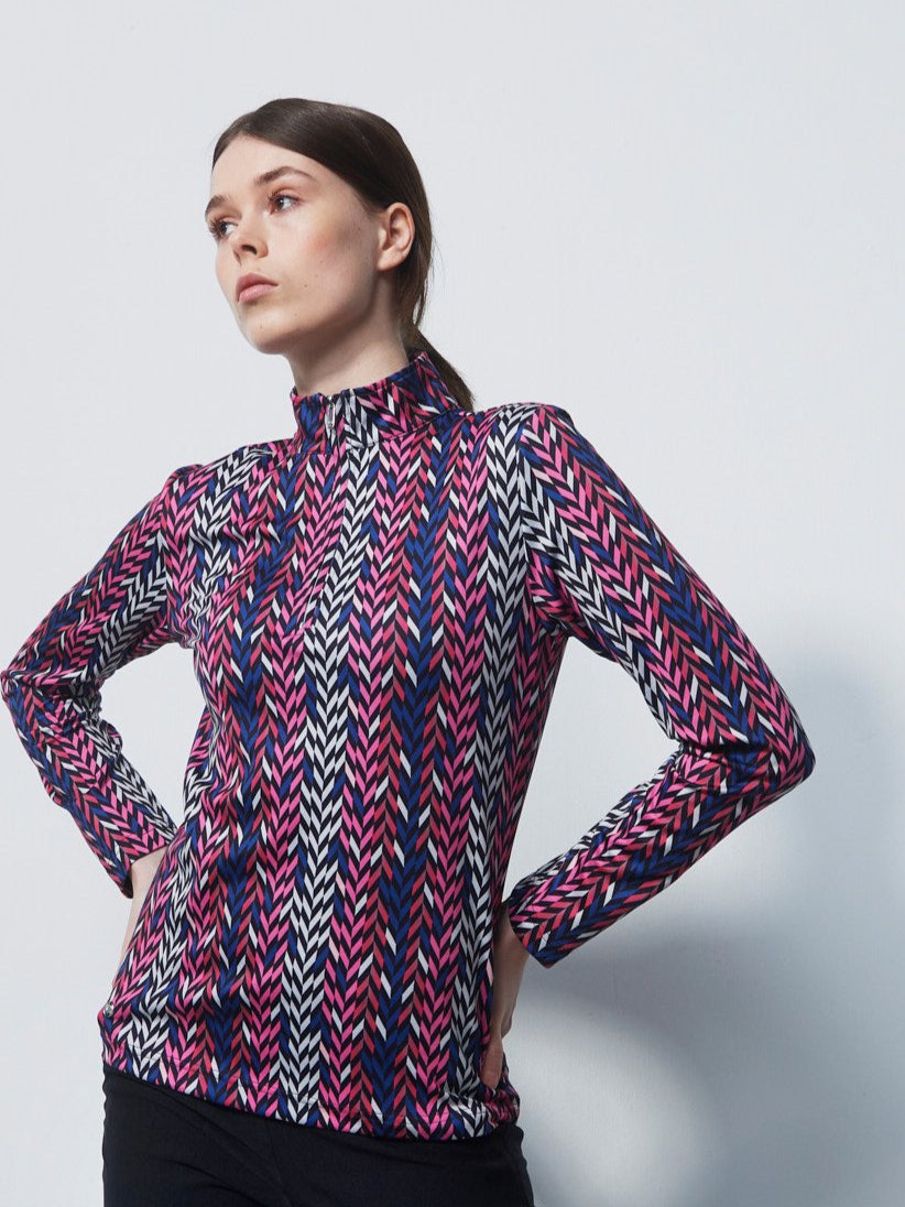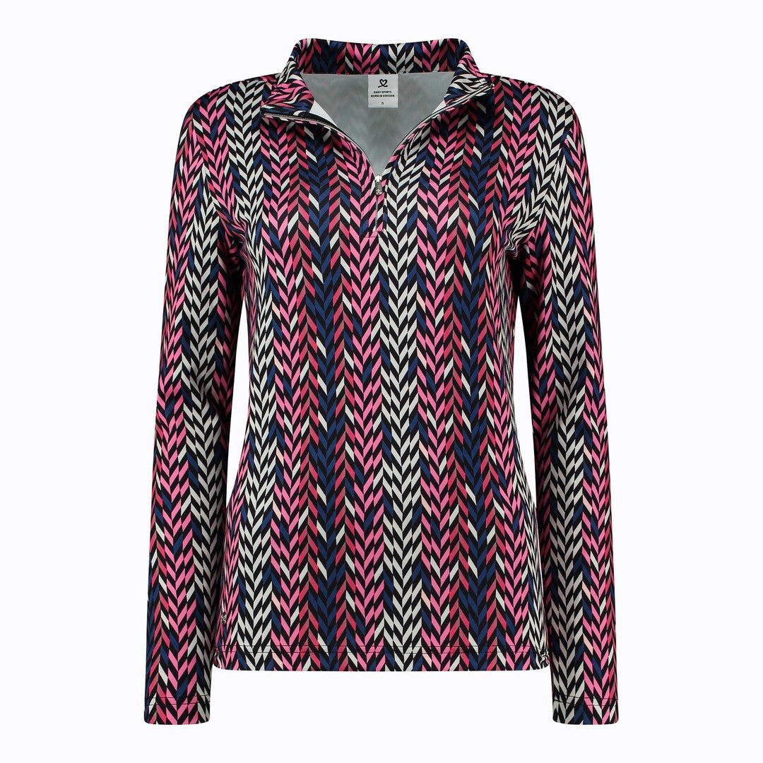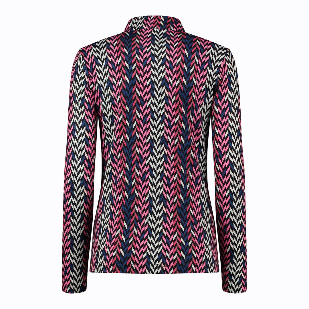 The Daily Sports Avignon Long Sleeve Polo is a stylish, functional golf shirt designed for year-round comfort. This long-sleeved polo features a soft, brushed jersey fabric that feels comfortable against the skin, making it ideal for wearing on or off the course. The material is quick-drying, so it’s well-suited for active days, and it’s enhanced with elastane, providing some stretch for ease of movement. Its standout design includes an all-over print in pink, cobalt blue, and beige, adding a distinctive and vibrant look to your wardrobe
