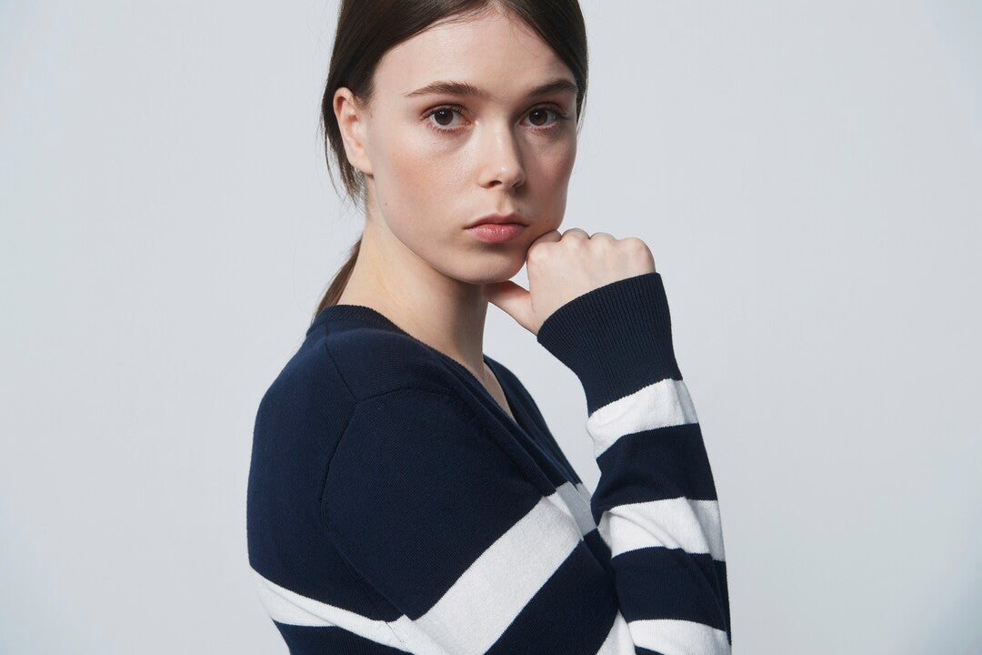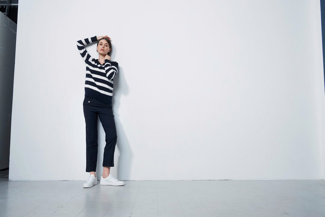 The Ferrara ladies v-neck golf jumper from Daily Sports is made from a soft cotton material and 5% cashmere.