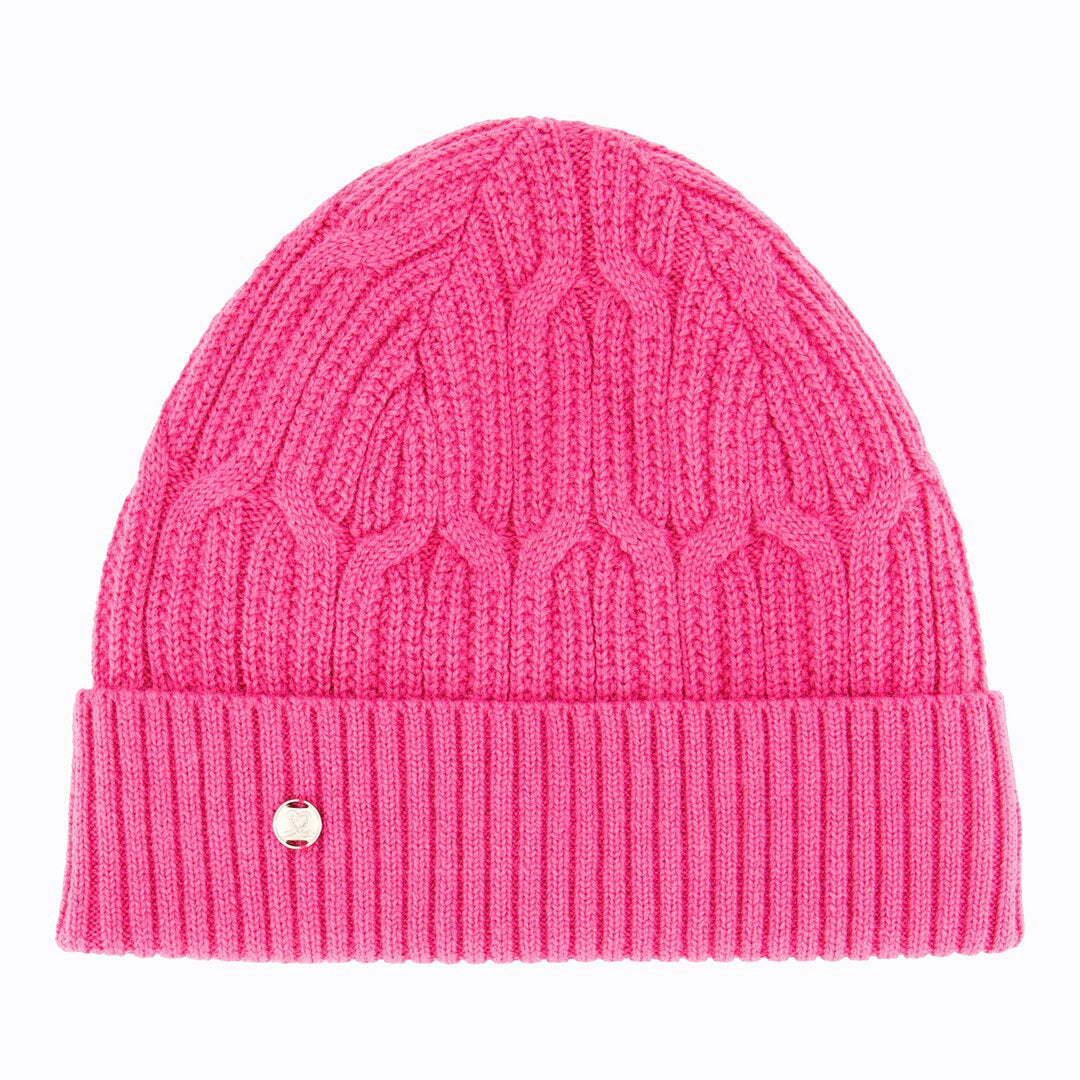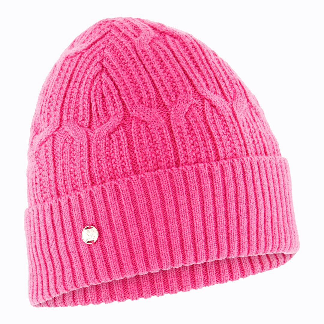 Stay cozy and stylish with the Olivet cable-knit hat. Crafted in a warm jacquard knit, this hat features a soft lining for ultimate comfort. Made from a blend of 70% acrylic and 30% wool, it provides excellent warmth and a snug fit. The elegant design makes it perfect for wearing at the golf club or for everyday use.