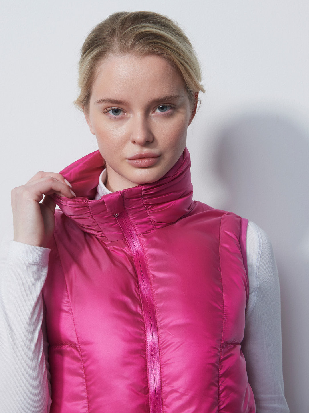 The Daily Sports Metz Padded Vest in the "Tulip" shade is a versatile, lightweight piece designed to offer warmth and comfort without bulk. Made with synthetic down for insulation, this vest is perfect for cooler days on the golf course or as a casual layer for outdoor activities. Its two-way front zipper and relaxed fit allow for easy movement, while the fabric blend is durable and easy to maintain. The vibrant Tulip color adds a pop of style, making it a great addition to any athletic or casual wardrobe