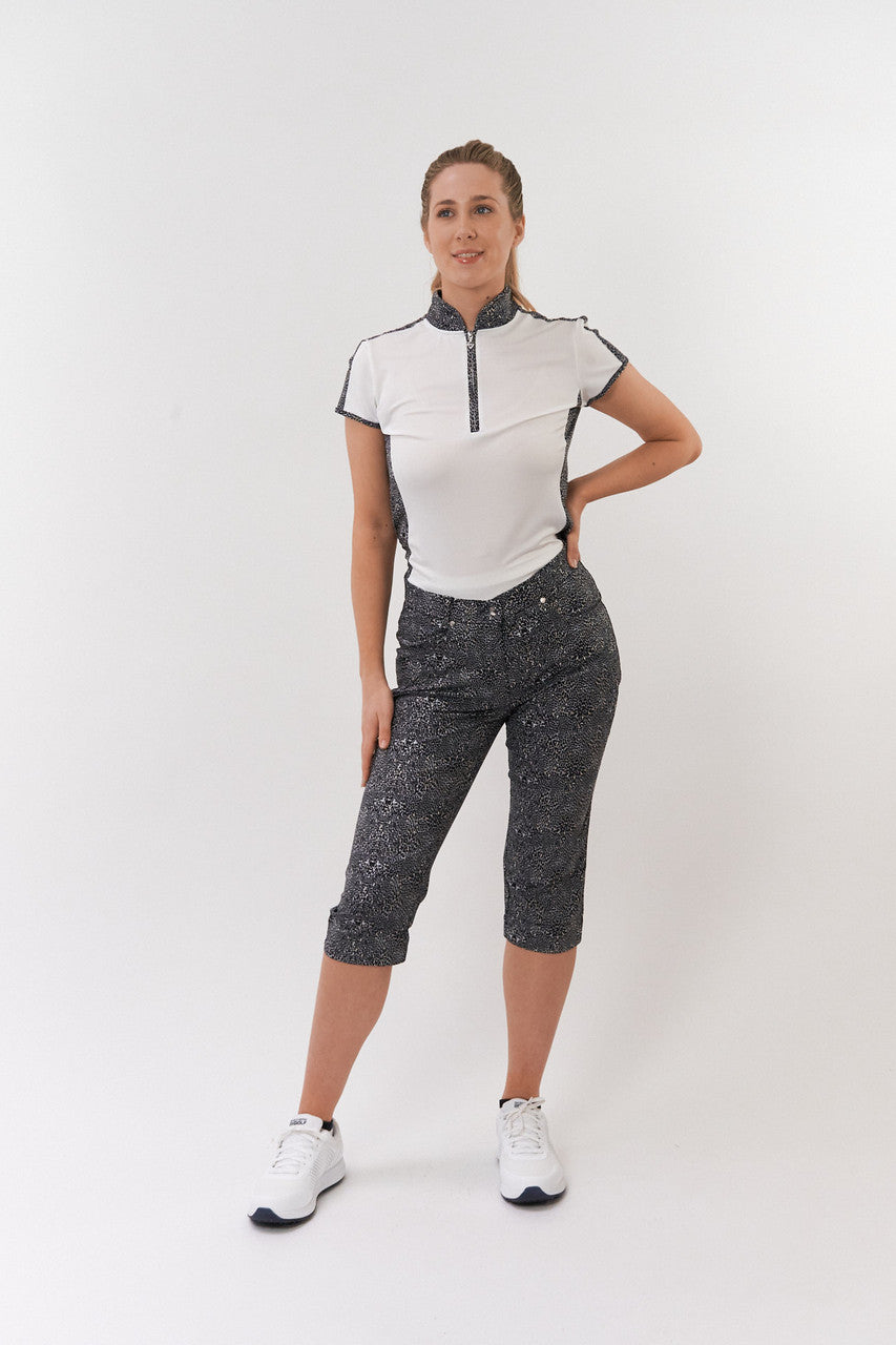 These capris are stylish and flattering with a feminine all-over cheetah pattern. Great with a plain top for a balanced look, with a partial print for an extra touch of personality or make a statement with a full pattern polo!