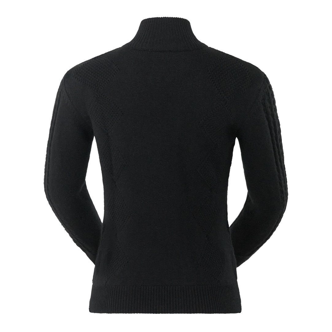 Pure Golf Sorrell Cable Knit Lined Quarter Zip Ladies Golf Jumper - Black