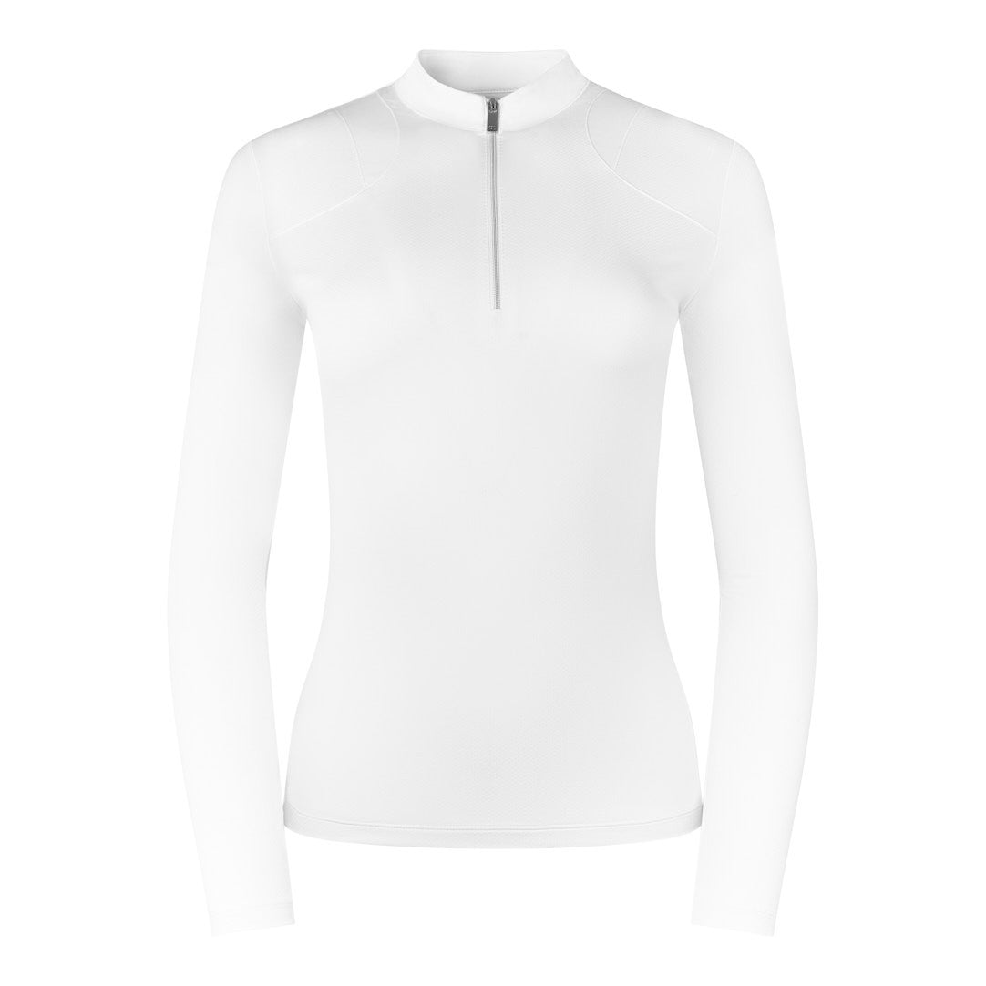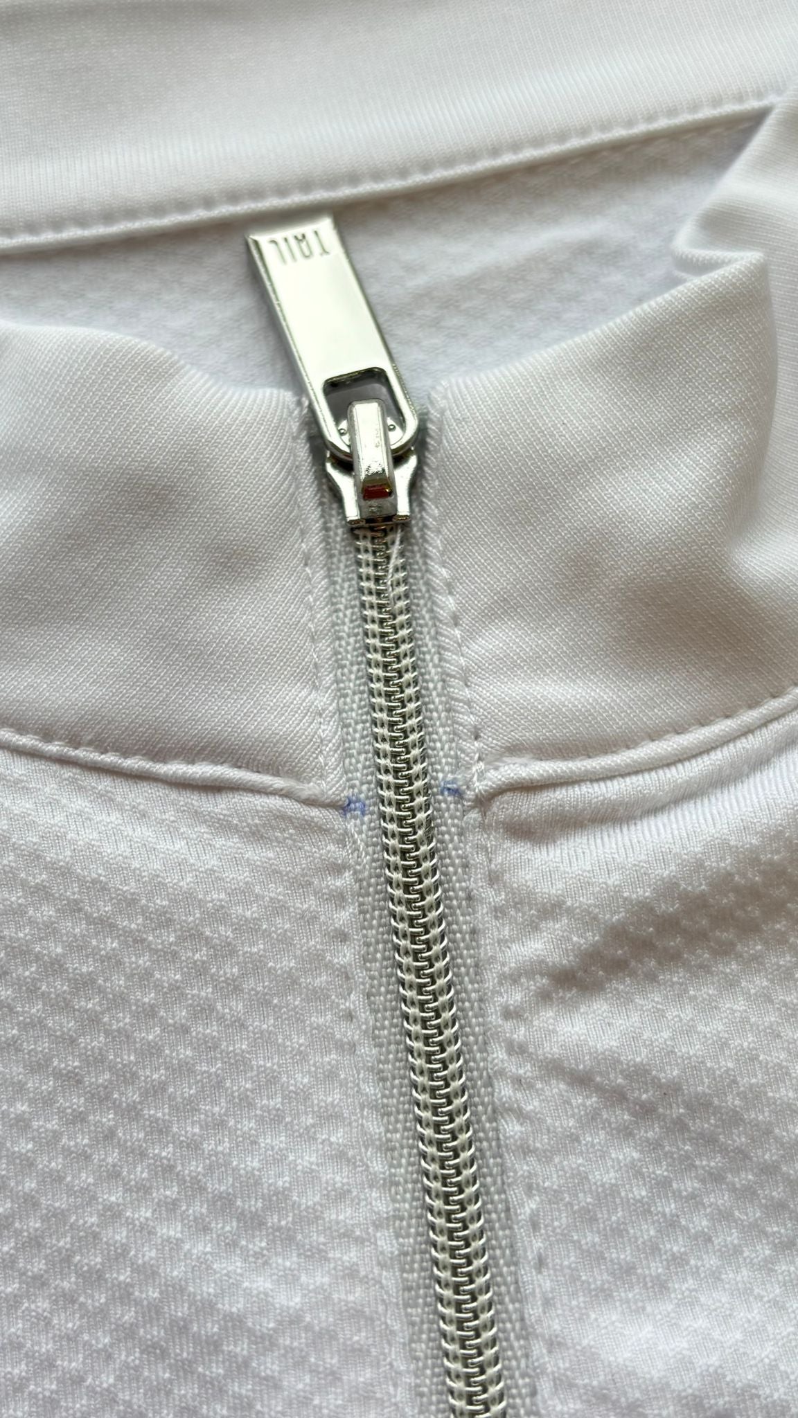 Please note: This top is listed as second quality due to a small manufacturing error by Tail on the zipper placket. There are 1 or 2 faint blue dots located on the zipper placket (see photo). The rest of the garment is unaffected, in perfect condition, and this does not affect its wear, performance, or size. Please refer to the photo for a close-up of the fault.