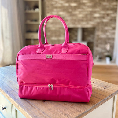 This ladies golf holdall, is stylish and practical. Its the perfect size for carrying all your golfing gear. Its separate shoe compartment makes it easy to transport your golf shoes without getting your other belongings dirty. Our new honeycomb design gives a lovely textured look to the holdall. The internal lady golfer linning adds an added touch of luxury, With internal pocket. Perfect for a weekend away! Makes the perfect prize!