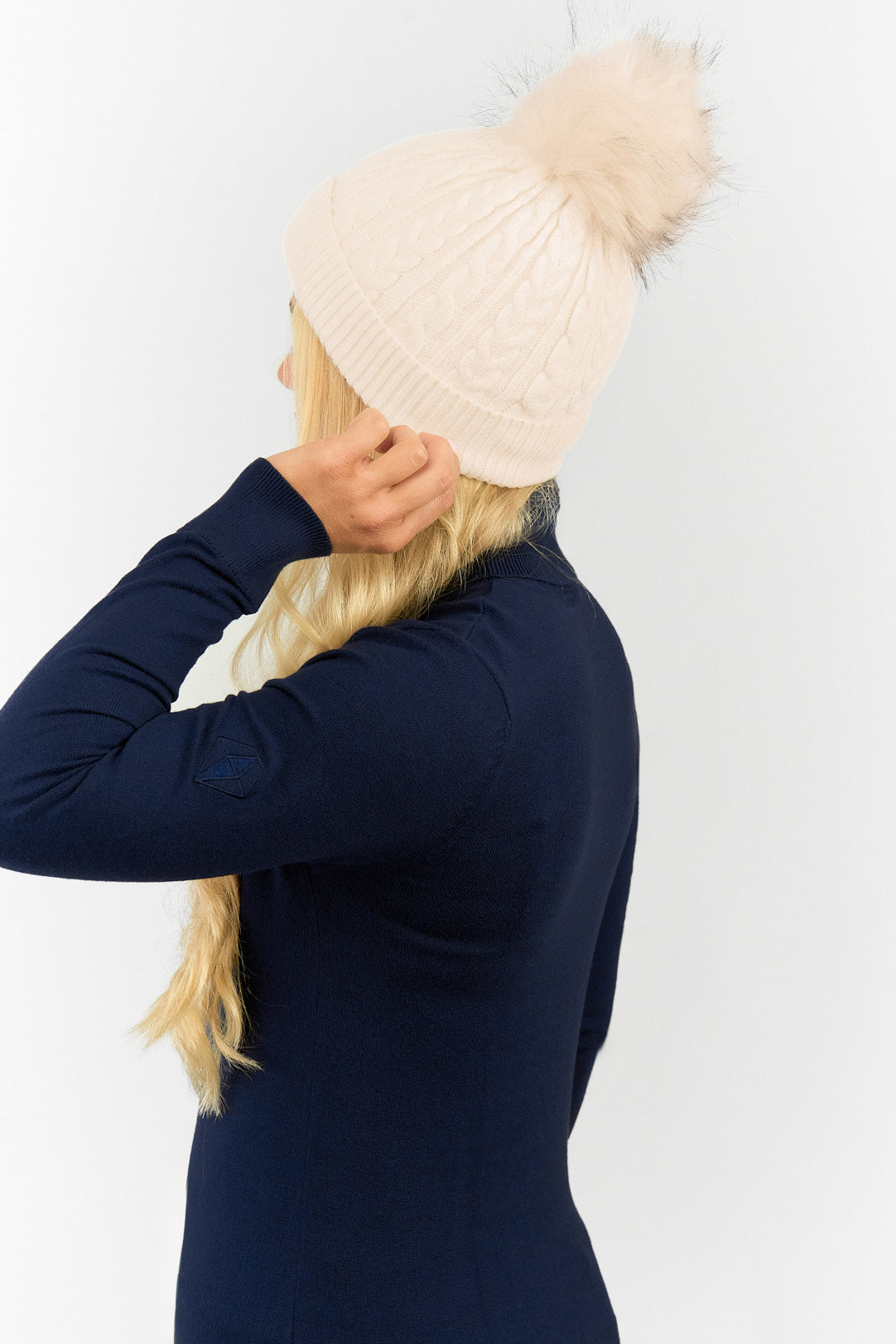 This waterproof bobble ladies golf hat from Surprizeshop is perfect for staying dry this Autumn/Winter. This versatile Winter White makes the perfect addition and whether you're out on the course or on a winter walk you'll stay stylishly dry. This hat has three layers - an inner waterproof layer plus a soft fleece lining which makes it warm and comfortable to wear and the knit as the outer layer. Detachable faux fur bobble.