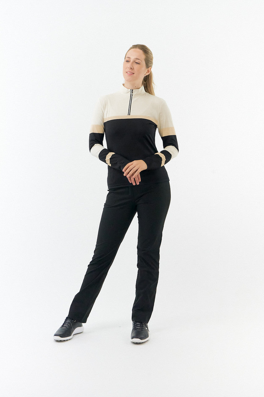 Luna is a smart quarter zip ladies golf top made from 4-way stretch, UPF35 sun protection fabric. In tonal colours to co-ordinate with our Champagne Orchid collection. This top makes a great alternative if you are a fan of the neutral tones featured in the Champagne Orchid collection but pattern is not your style. We recommend staying true to size to wear as a base layer, or sizing up to wear as a mid-layer.