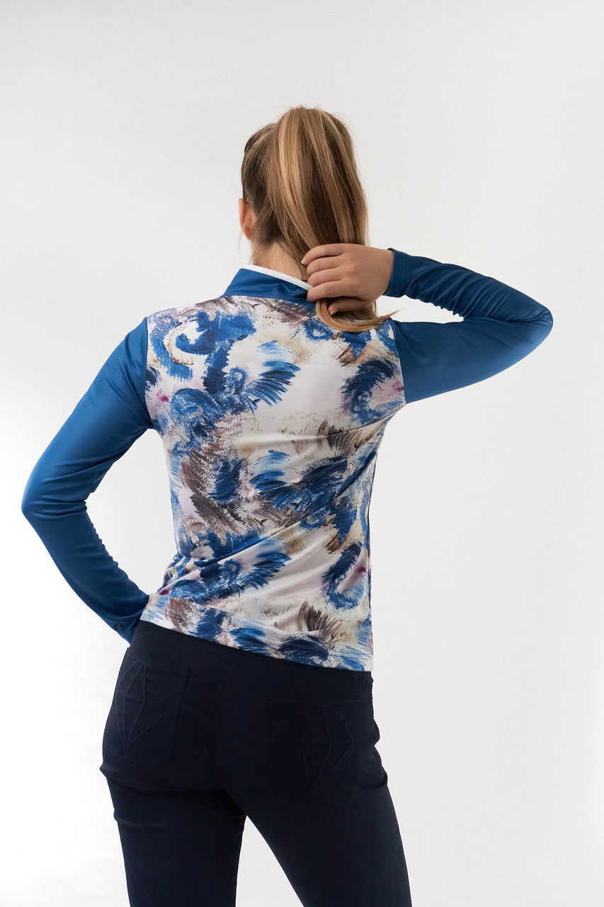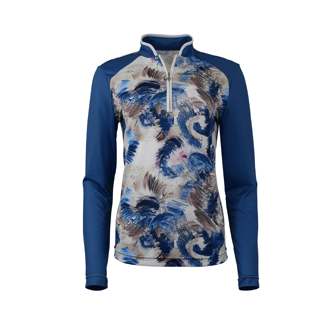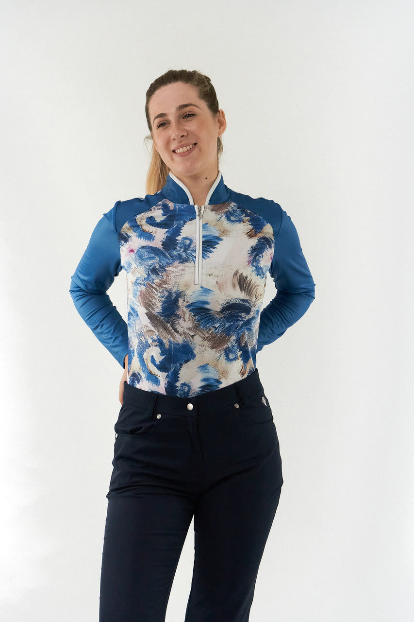 Pure Golf Sienna Long Sleeve Zip Neck Top - Stone Canvas Collection - Vallarta Blue