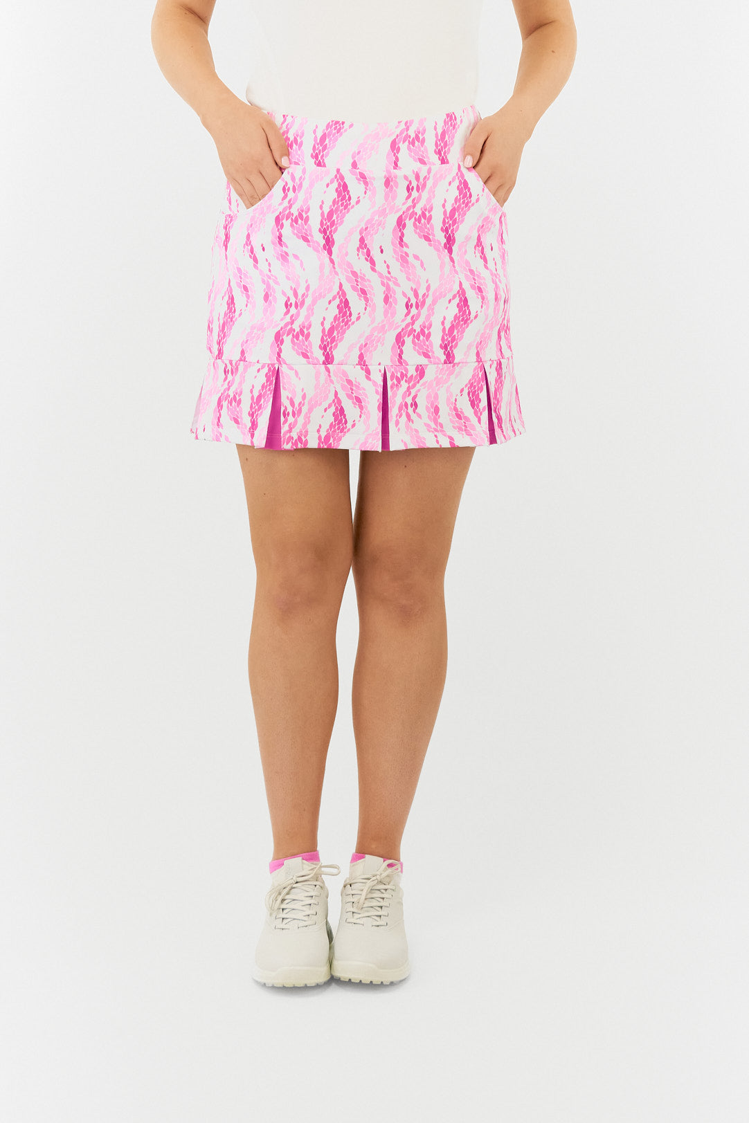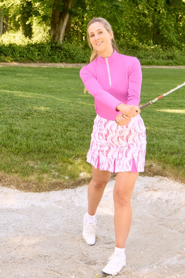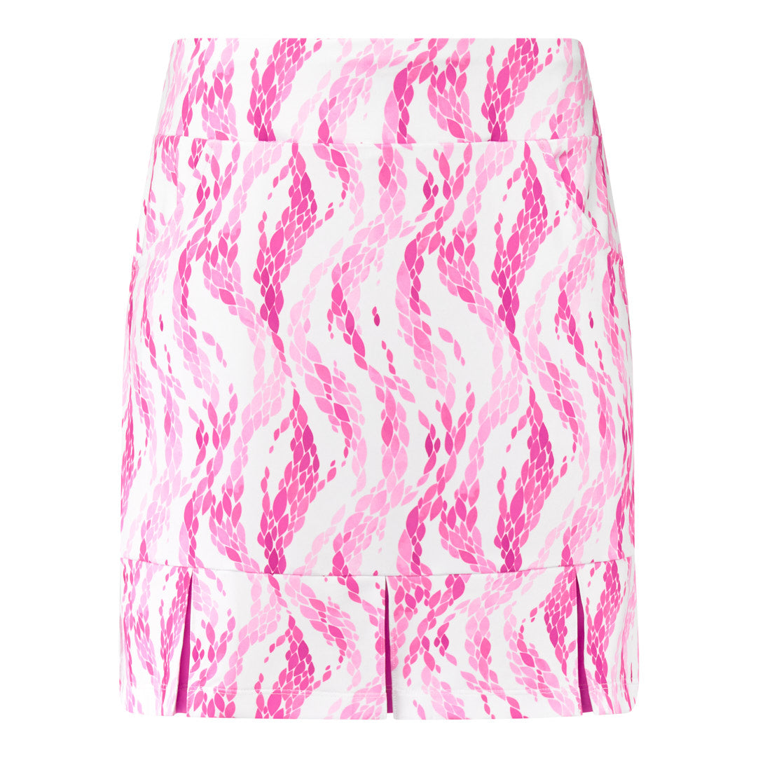 The Pure Golf Alda Pull-On Rose Water Golf Skort Ladies in our Summer Gardenia collection featuring soft layers of pink petals. This skort blends style and performance, with a striking design and top-tier features. It’s the ideal choice for golfers seeking a blend of comfort and style on the course. Discover why the Rose Water Ladies Golf Skort is a favorite among fashionable golfers.
