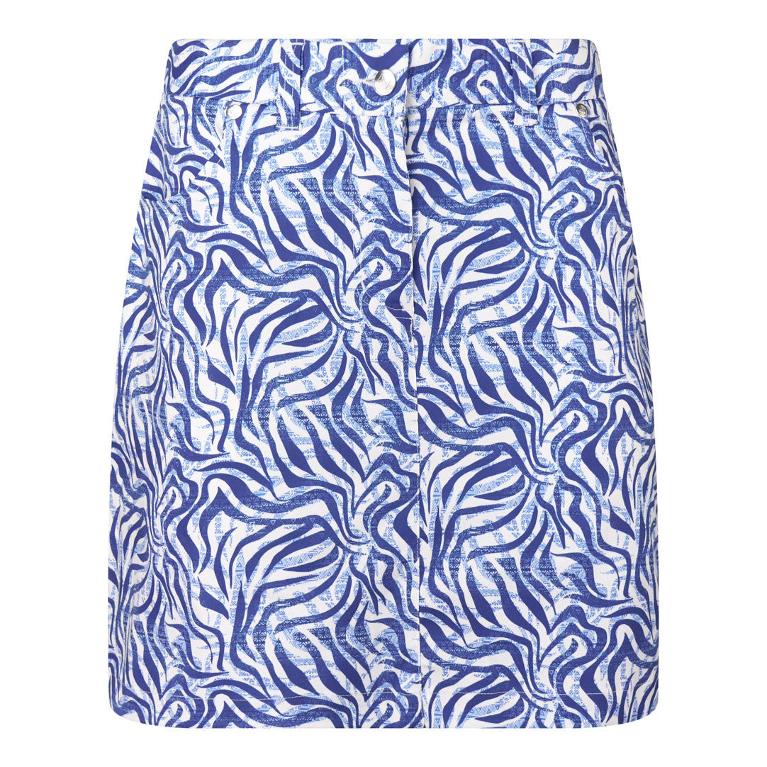 The Clarity skort has established itself as a firm favourite and is now available as part of the indigo jungle animal print Collection. Great with a plain navy or white top for a balanced look or one of the coordinated prints from this stunning animal inspired print range. It can also be layered up with the matching quarter zip long sleeve top. With an integral white inner skort. Handy pockets side and rear.