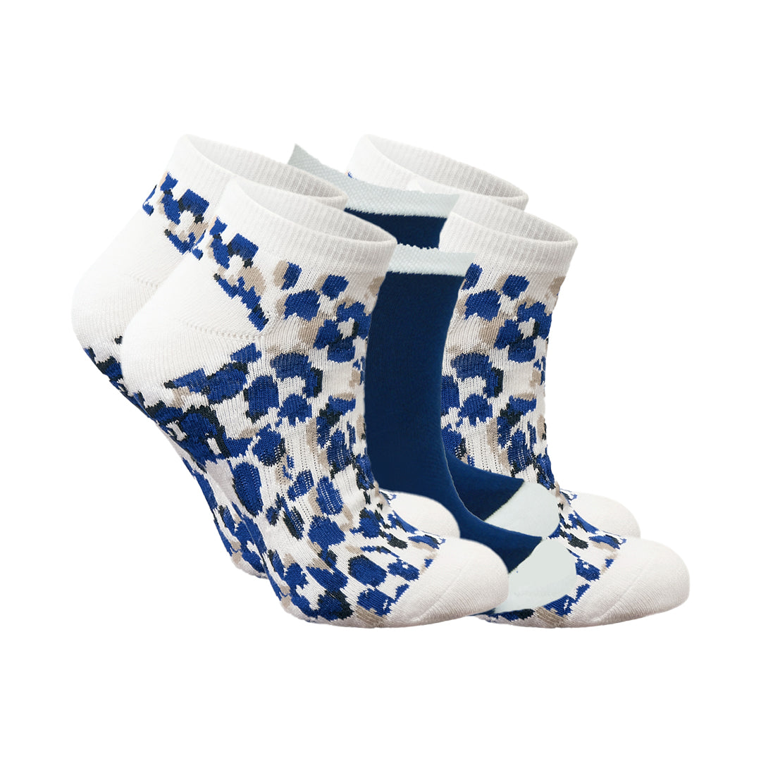 Cushioned sole ladies ankle socks with compression fit for added comfort. The lower cut of the socks mean they are less visible when worn with golf shoes, making them ideal for wearing with golf dresses, skorts, or shorts. Made with a soft, stretchy cotton blend fabric for breathability.