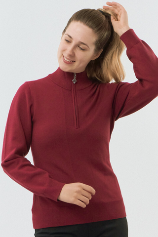 Pure Golf Sienna Long Sleeve Zip Neck Top - Garnet Berry