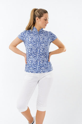 Pure Golf Ladies Rise Cap Sleeve Polo Shirt - Indigo Jungle