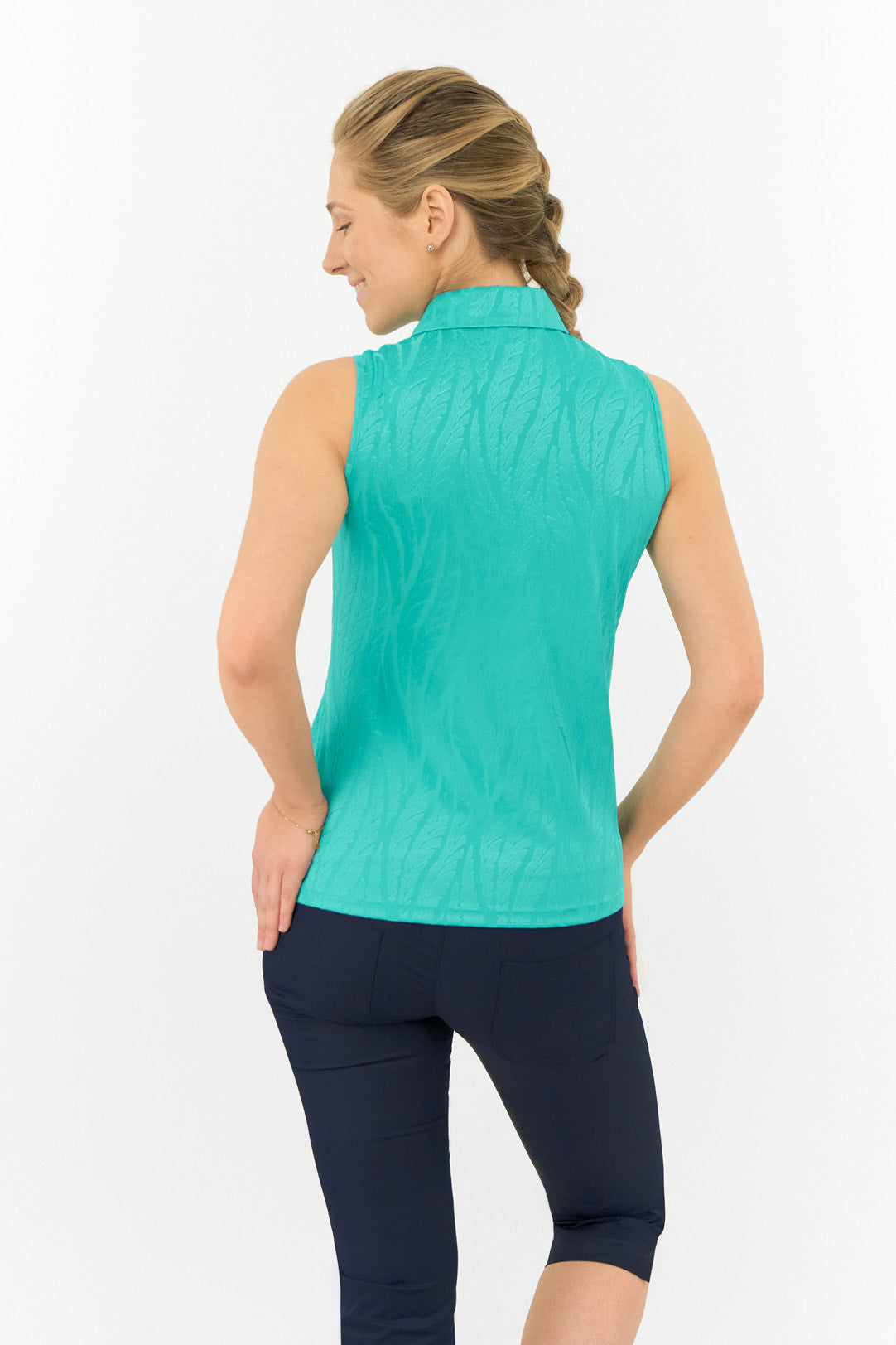 Change your look on the green with our Pure Golf Freya-Jacquard Ocean Textured Ladies Golf Top. This sleeveless polo from our Pure Golf With Personality Collection masterfully combines cutting-edge technology with a stunning design, ensuring a flawless look from head-to-toe. With its eye-catching and innovative detail this essential piece is set to transform your wardrobe. Don’t miss your chance to make it yours today!