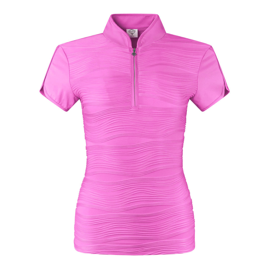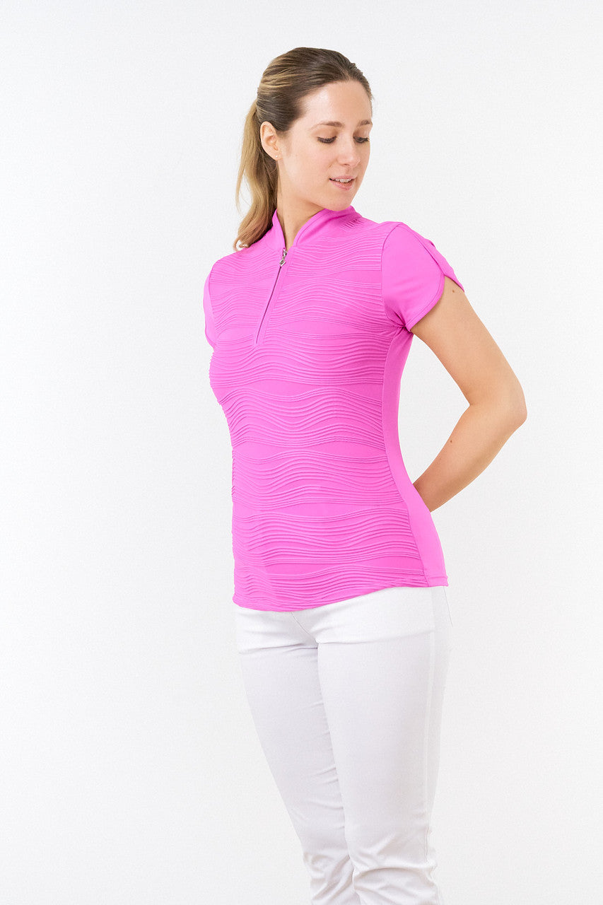 Cove is an elegant and luxurious cap sleeve ladies golf polo shirt. Also available in a cap sleeveless version and a choice of colours. Part of Our Pure With Personality Collection - plain colour polo shirts with added style, detailing and luxury- still at exceptional value.  With a beautiful textured front.