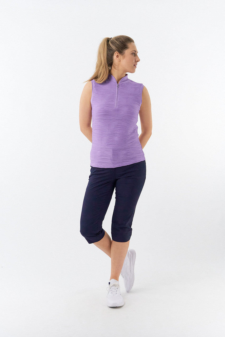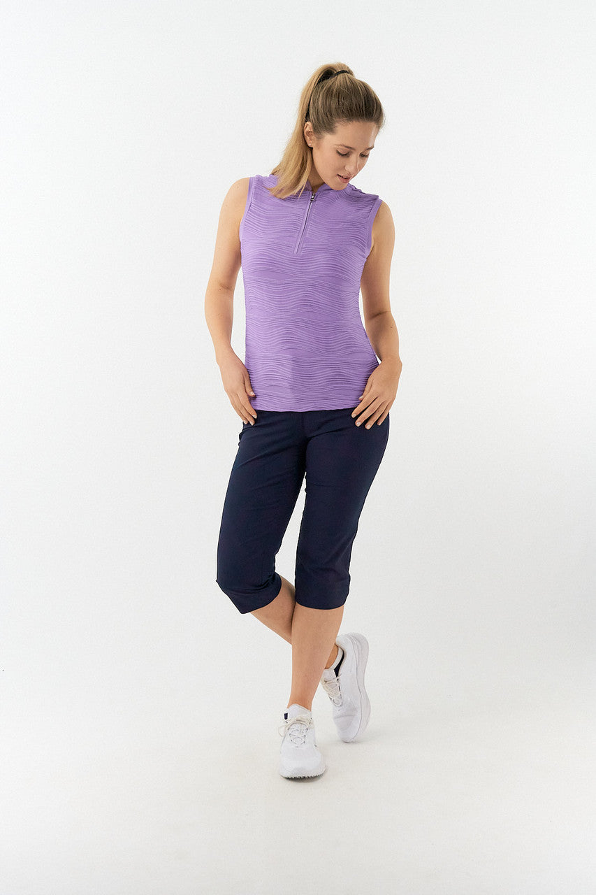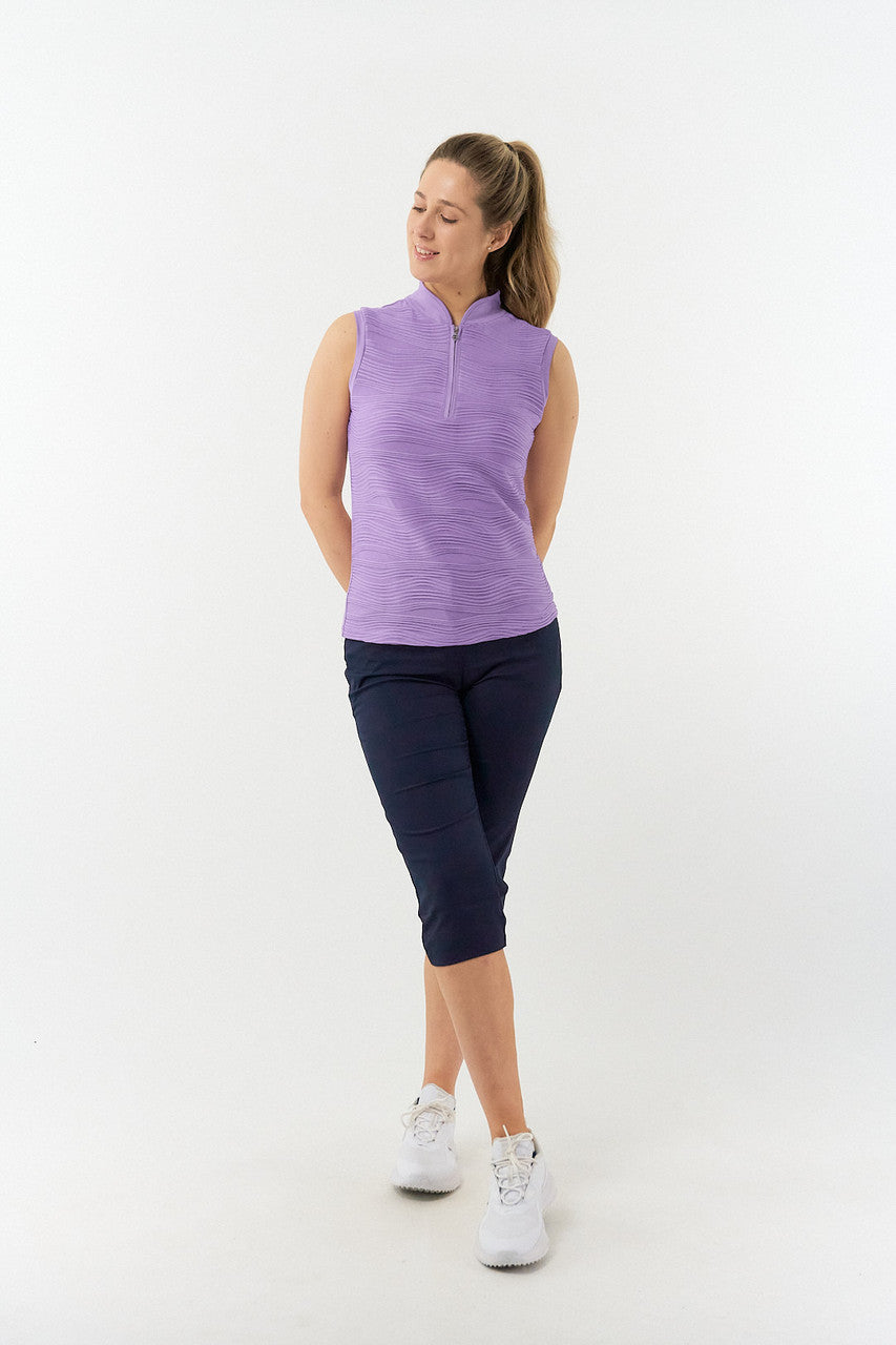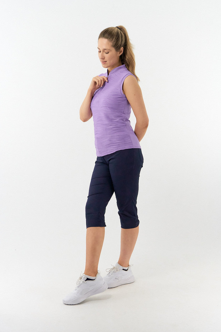 Cove is a beautiful textured luxurious sleeveless ladies golf polo shirt. Also available in a cap sleeve version. Part of Our Pure With Personality Collection - plain colour polo shirts with added style, detailing and luxury.