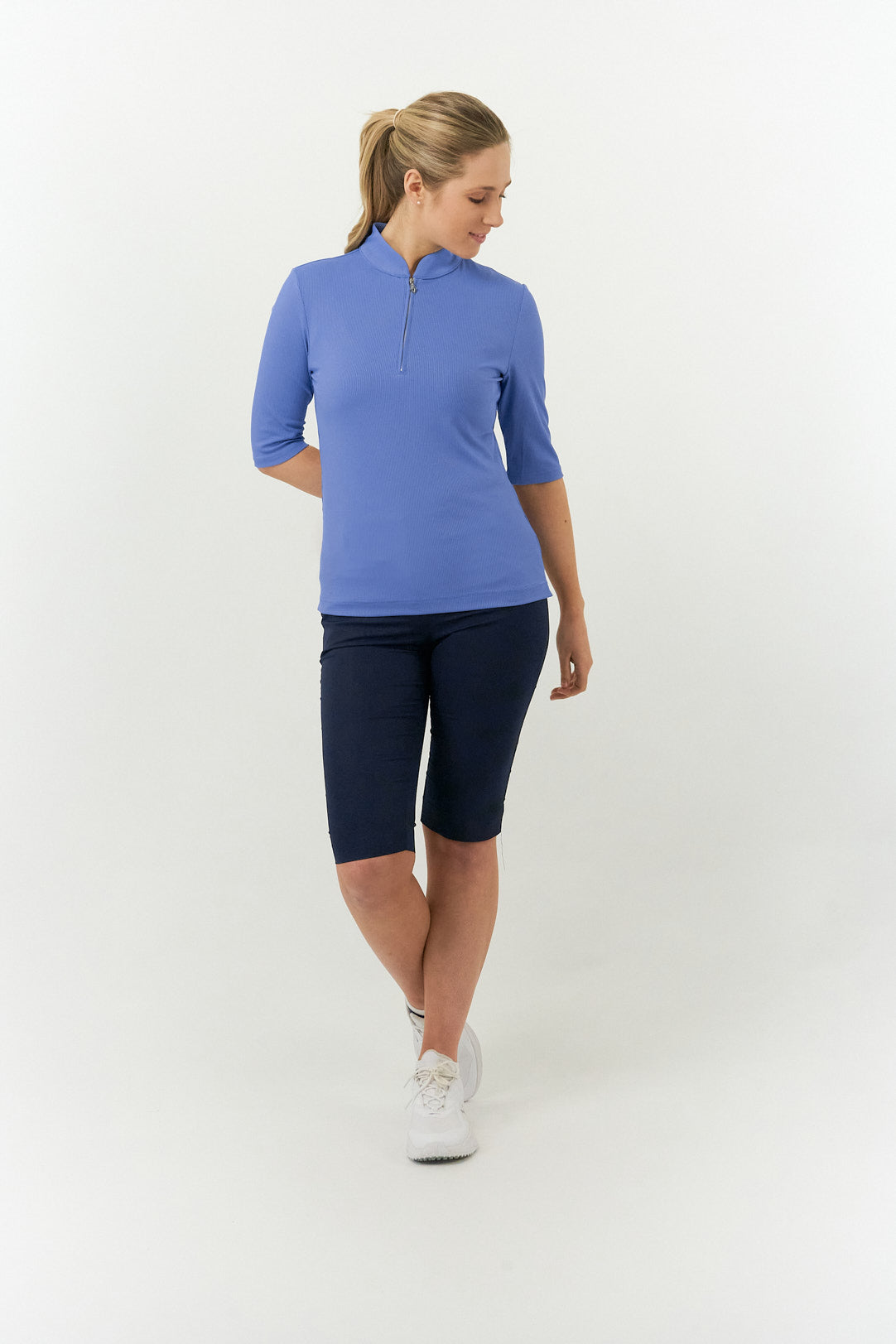 The Pure Golf Jasmine Half Sleeve Polo Shirt, where style meets functionality with added arm coverage for the sun-conscious golfer. Crafted from the same unique and soft textured fabric as its sleeveless counterpart, this polo shirt is designed to elevate your golf experience. Here's why the Jasmine Half Sleeve Polo Shirt is a must-have for those seeking extra sun protection: