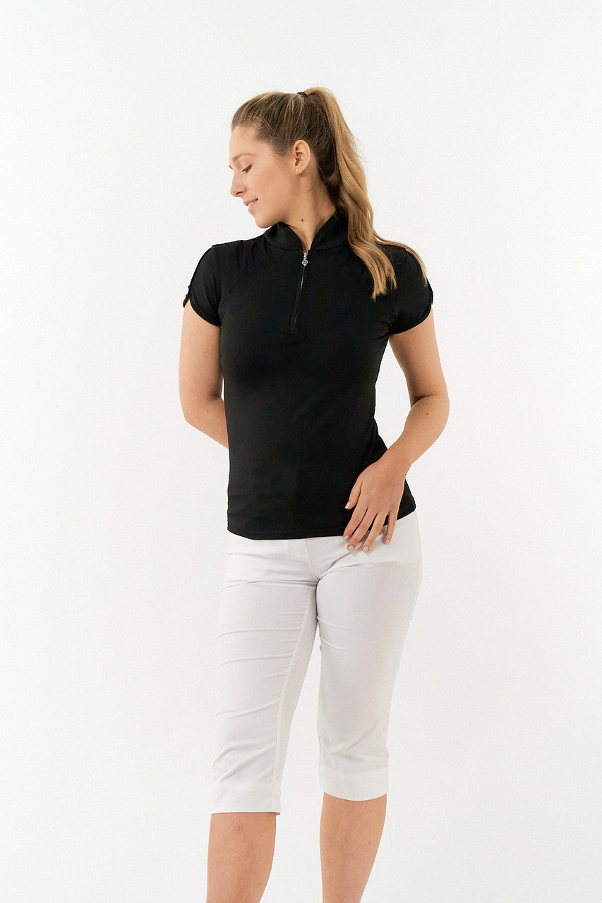 Pure Golf Olivia Ladies Cap Sleeve Polo Shirt - Black